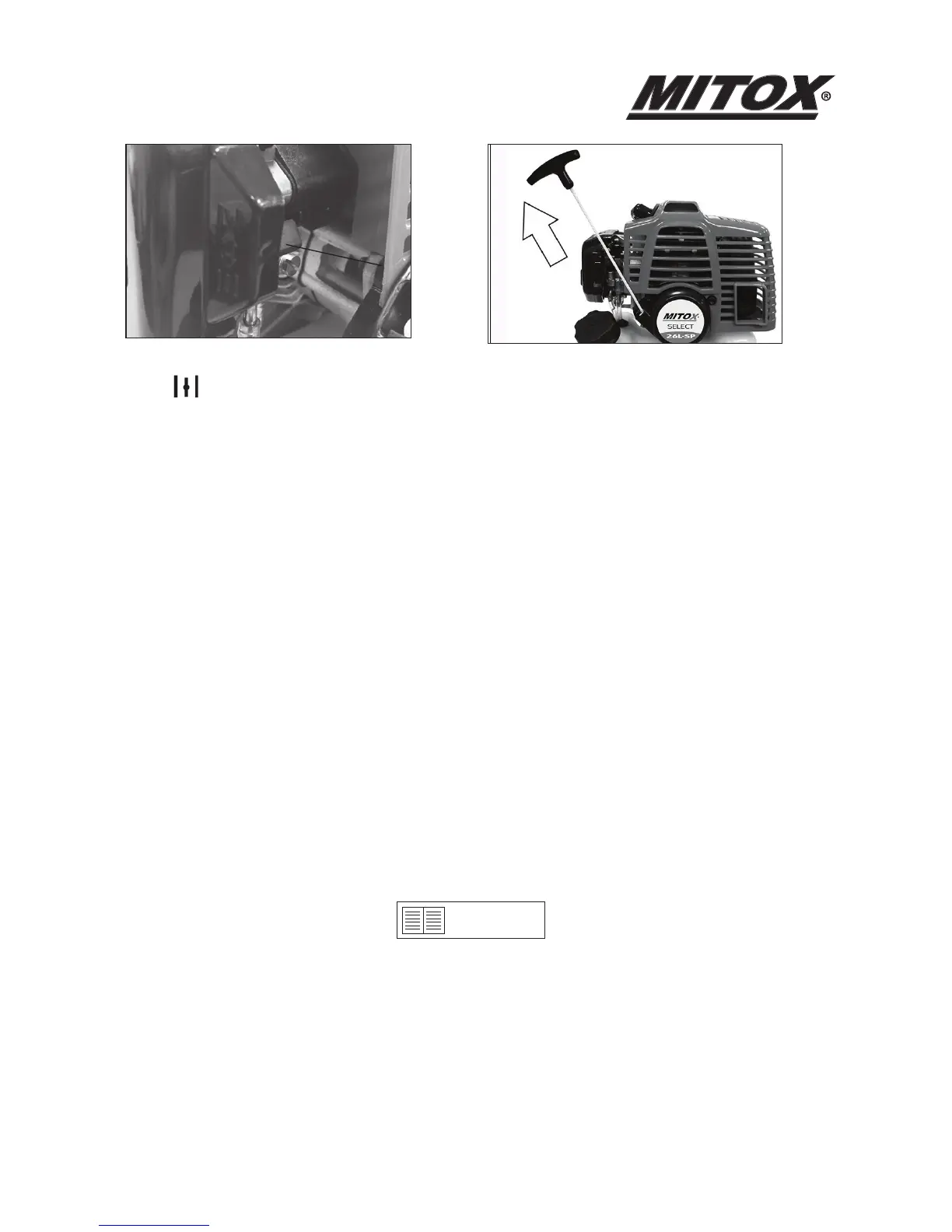llow the engine to warm up before use. When cutting, always use the Brushcutter on full throttle.