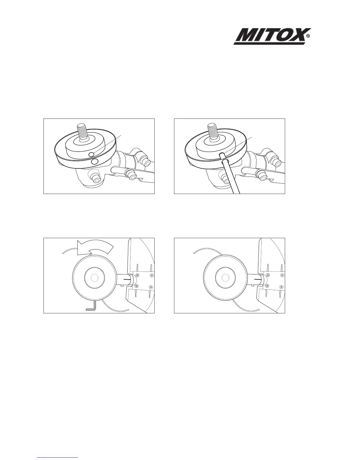 • Lay the Brushcutter on its back with the gearbox shaft facing up.
