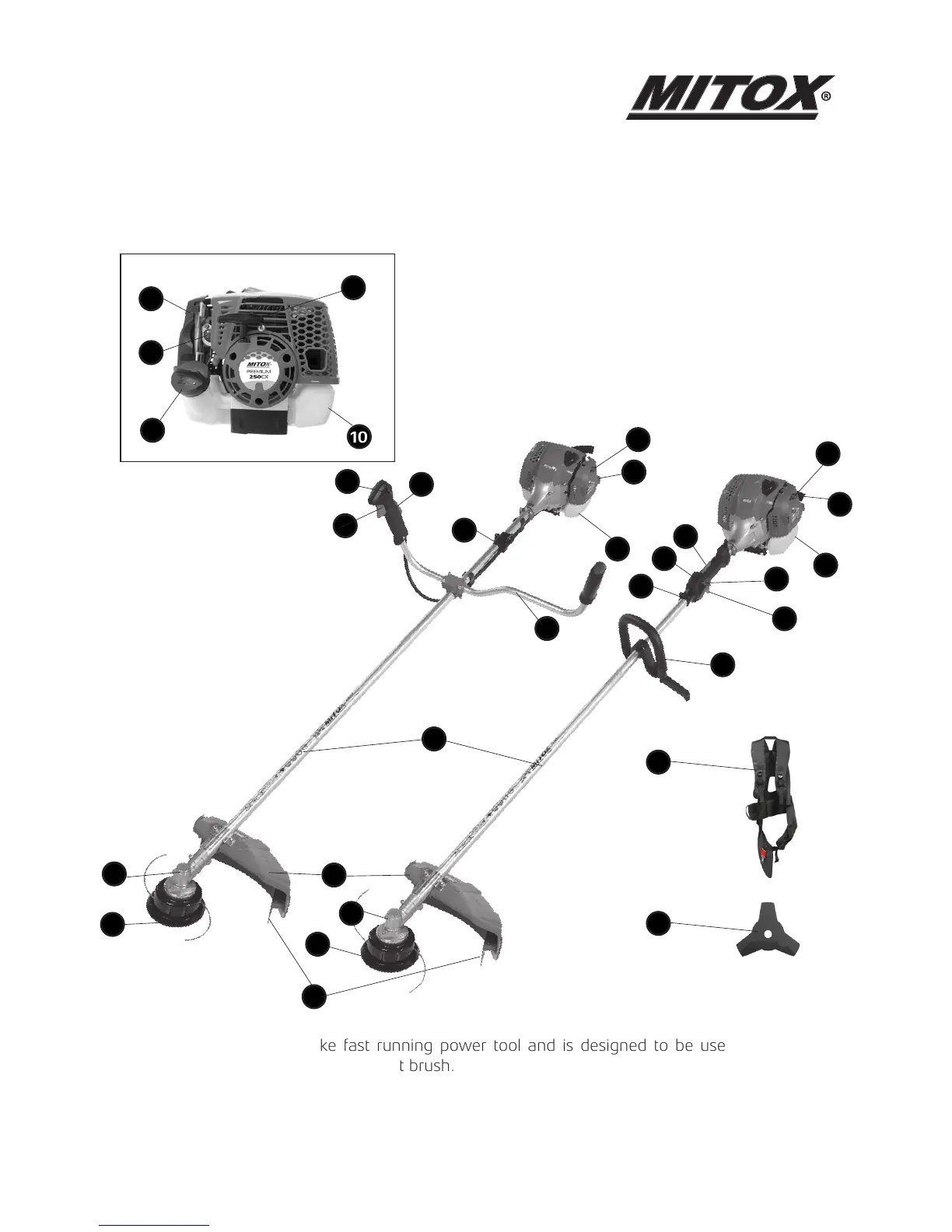 This Brushcutter is a 2 stroke fast running power tool and is designed to be used in a domestic