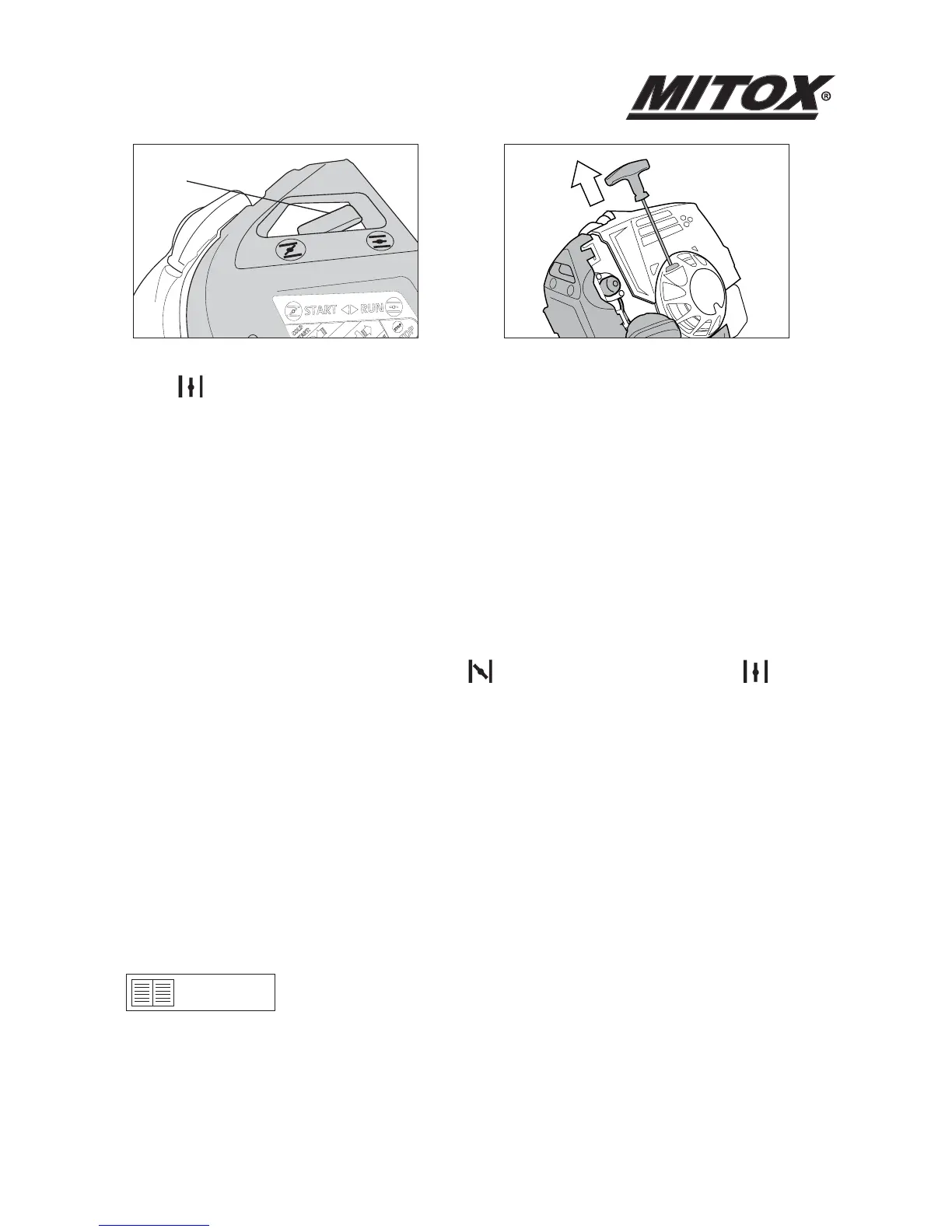 • Pull the starter rope until the engine starts, then squeeze the throttle briefly to release