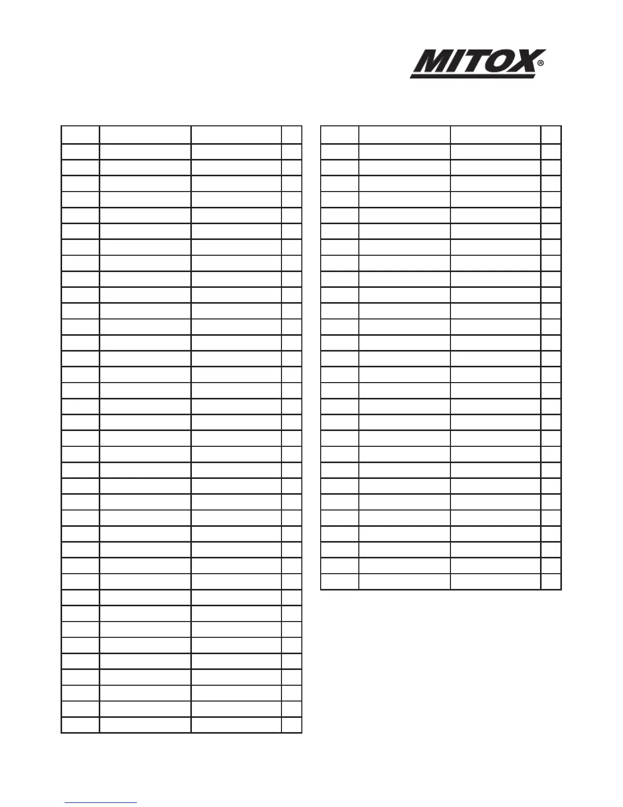 Appliance Parts List: 33L