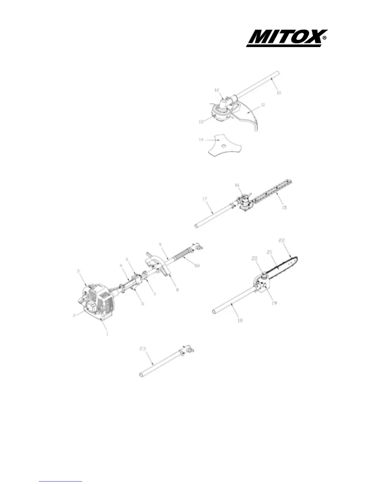 light brush, the hedge trimmer attachment for trimming new growth on hedges and the Pole Pruner for