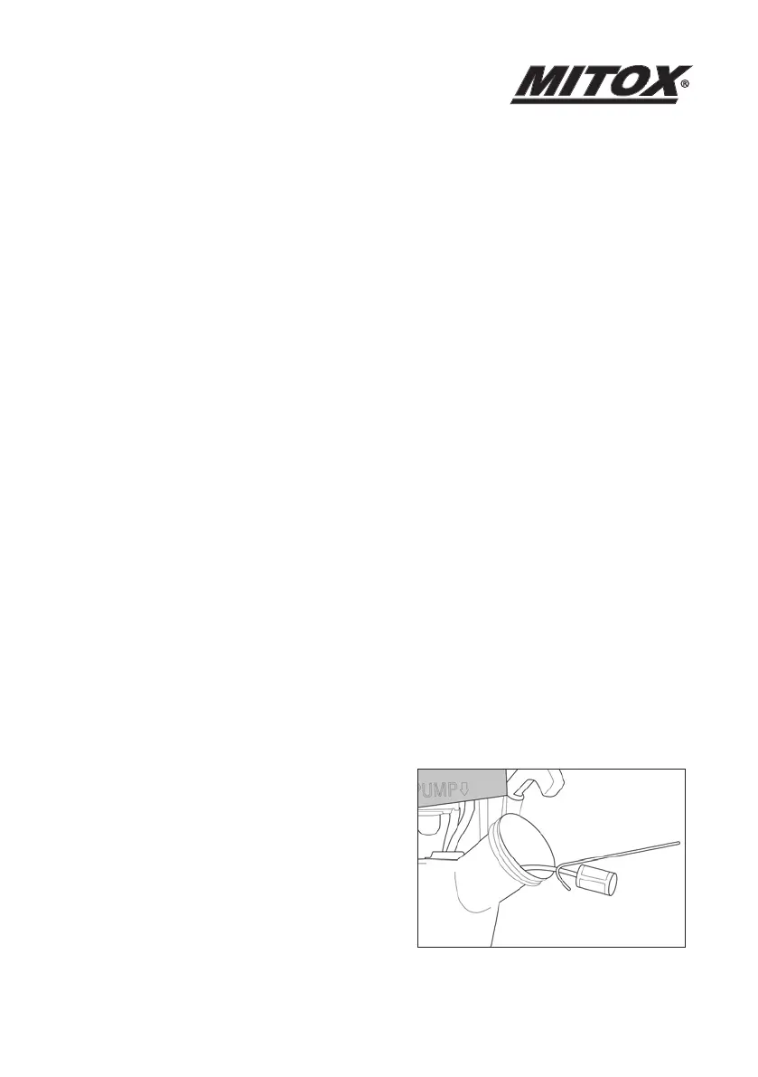 Every 15 hours of operation, using a wire hook,