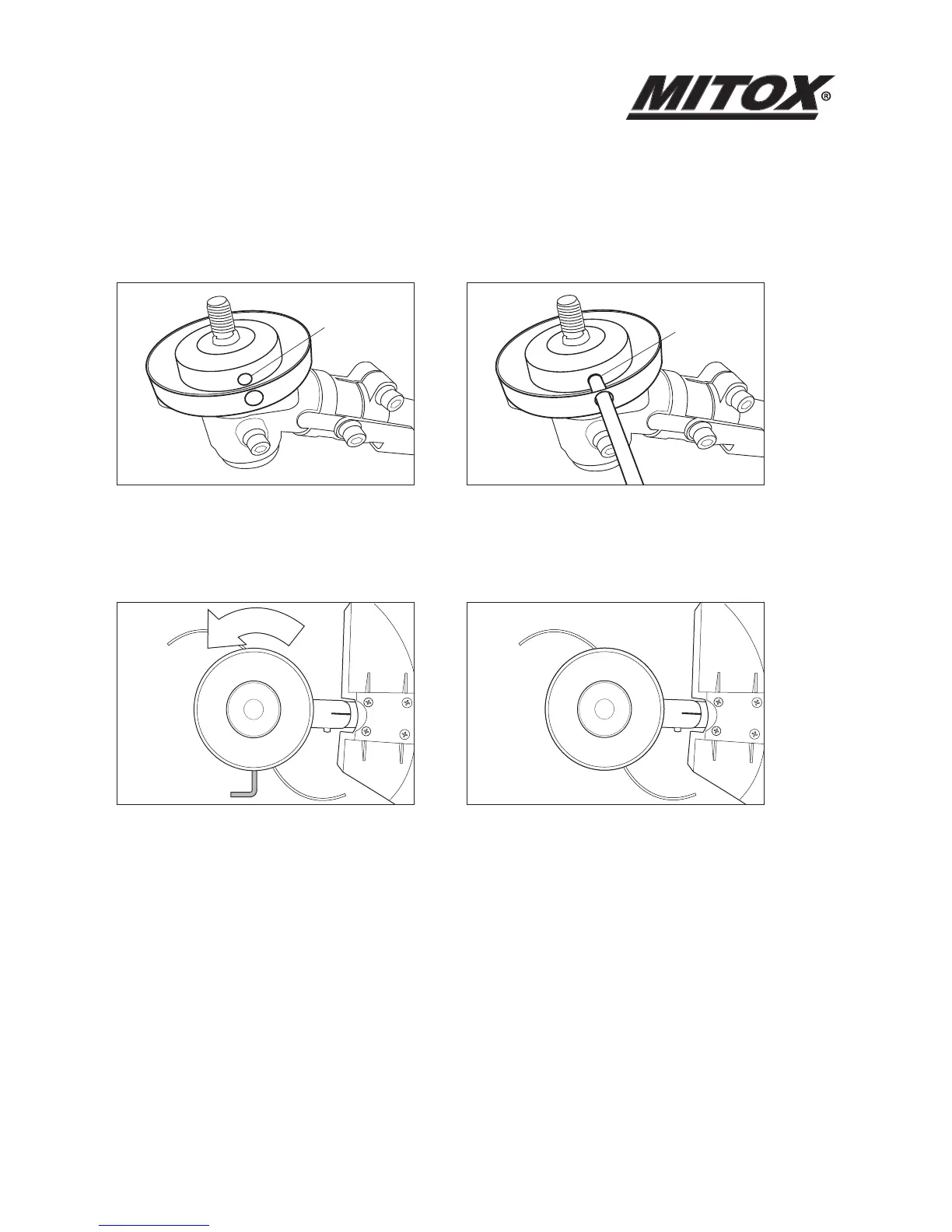 • Lay the Brushcutter on its back with the gearbox shaft facing up.