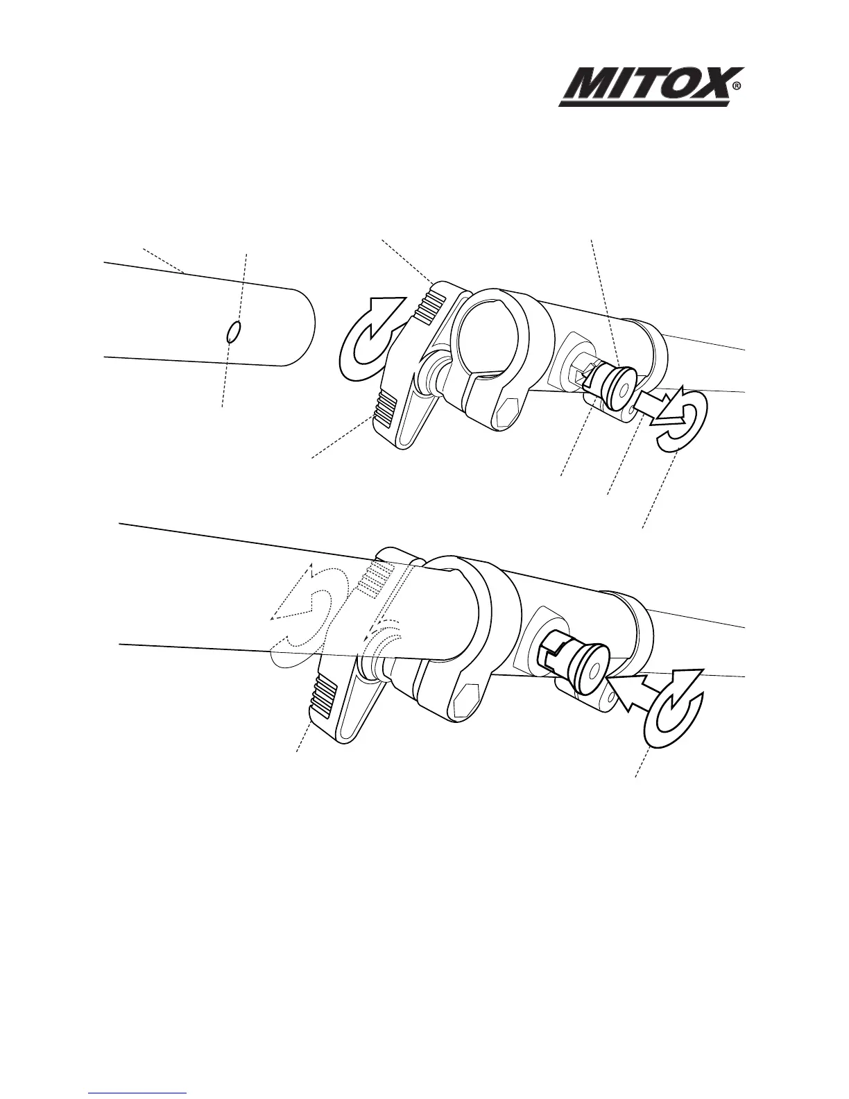 • Twist the locking pin (5) to release it from the outer position. You may need to twist the