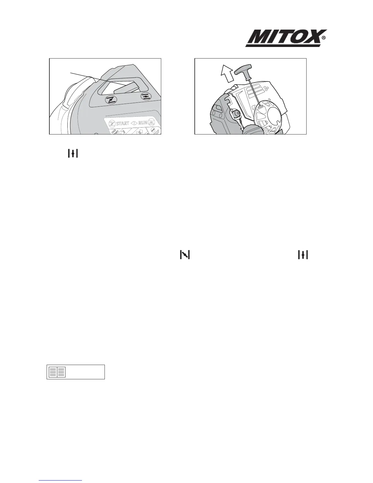 • Pull the starter rope until the engine starts, then squeeze the throttle briefly to release