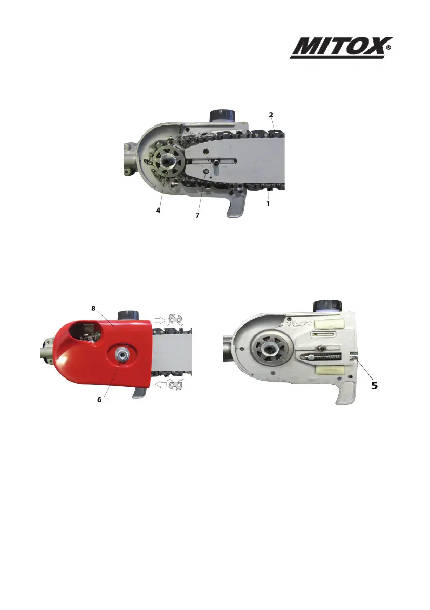 • Install the chain cover (8), and fasten the mounting nut (6) to finger tightness.