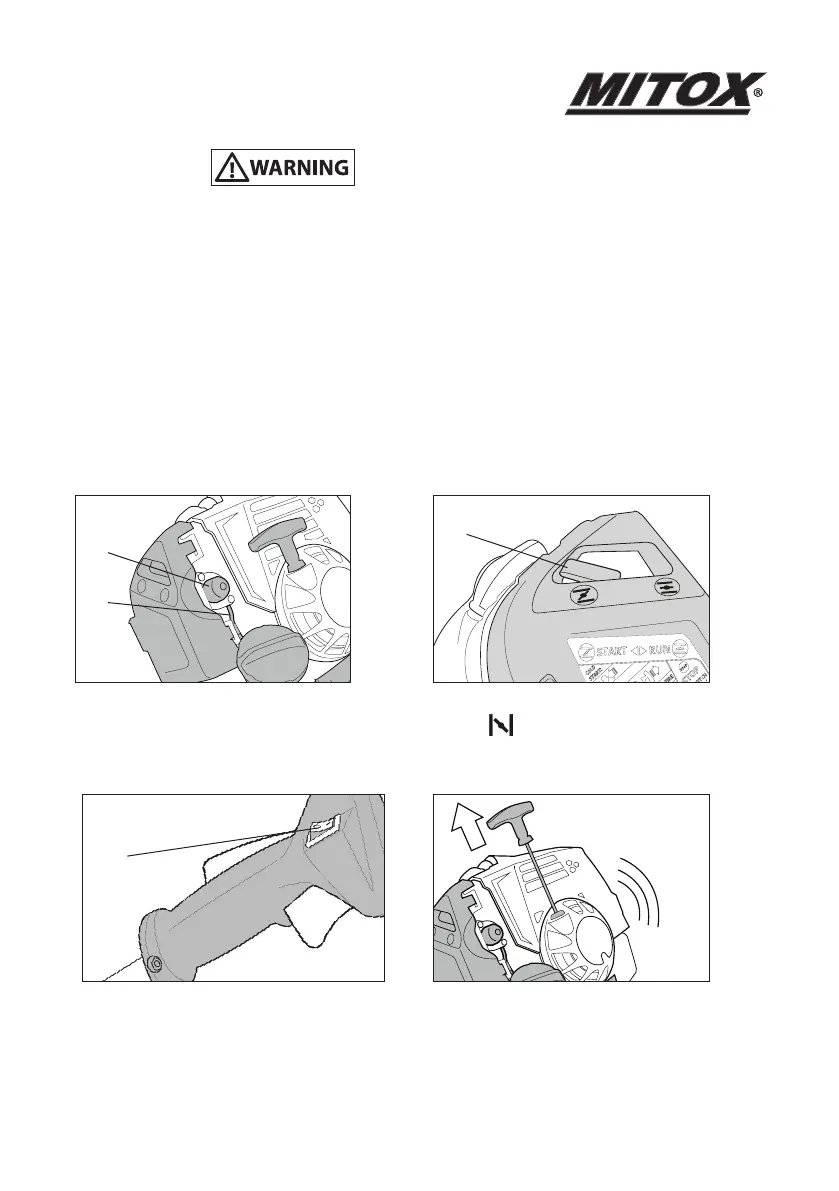 CAUTION do not pull the starter cord all the way out and do not let go of the starter handle when
