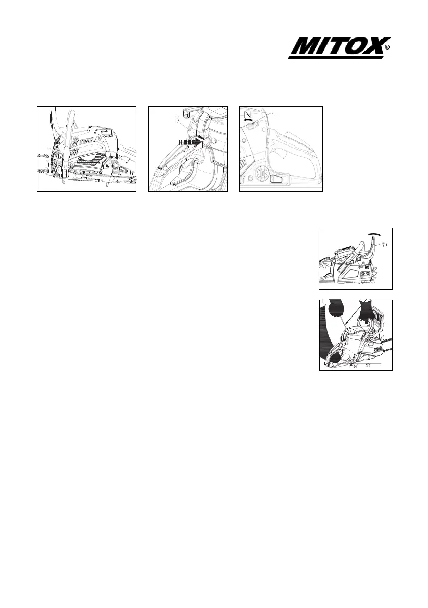 NOTE: Disengage the chain brake by pulling the chain brake towards the