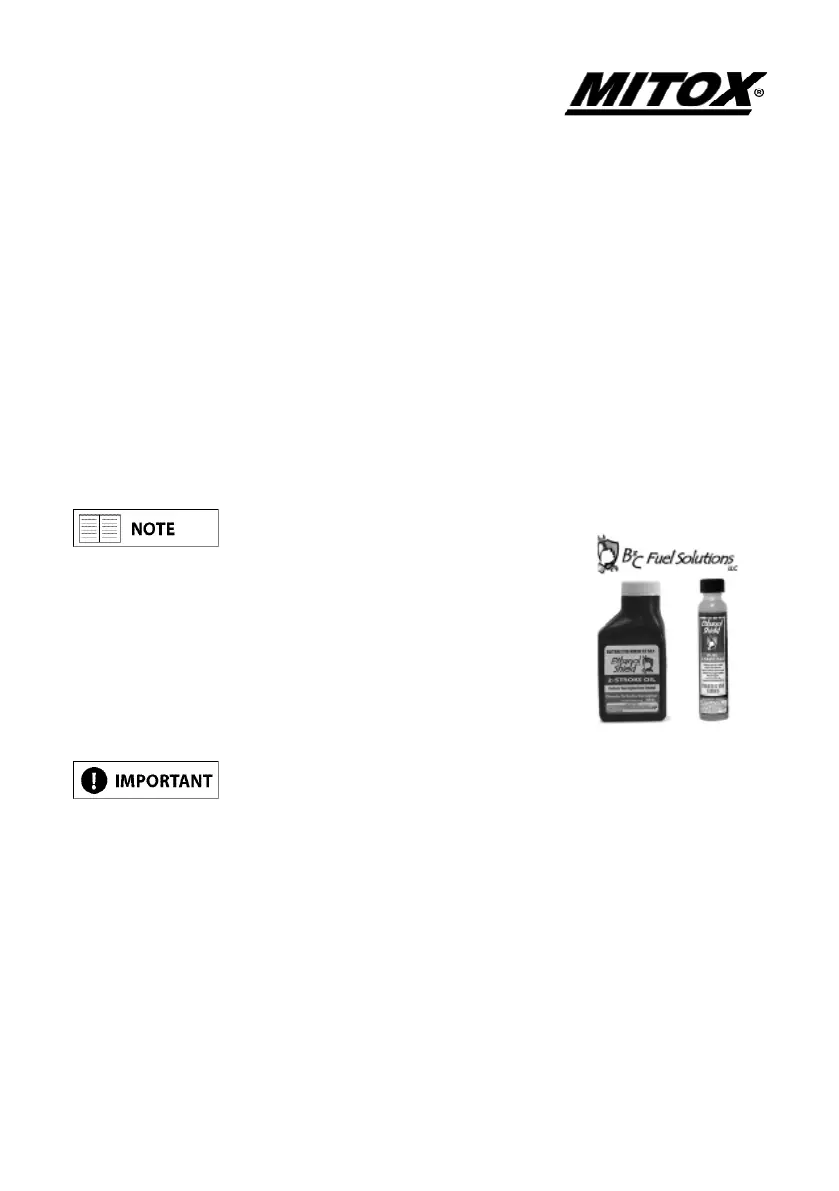 two-stroke engines. Mix in a ratio of 40 parts petrol to 1 part of oil.