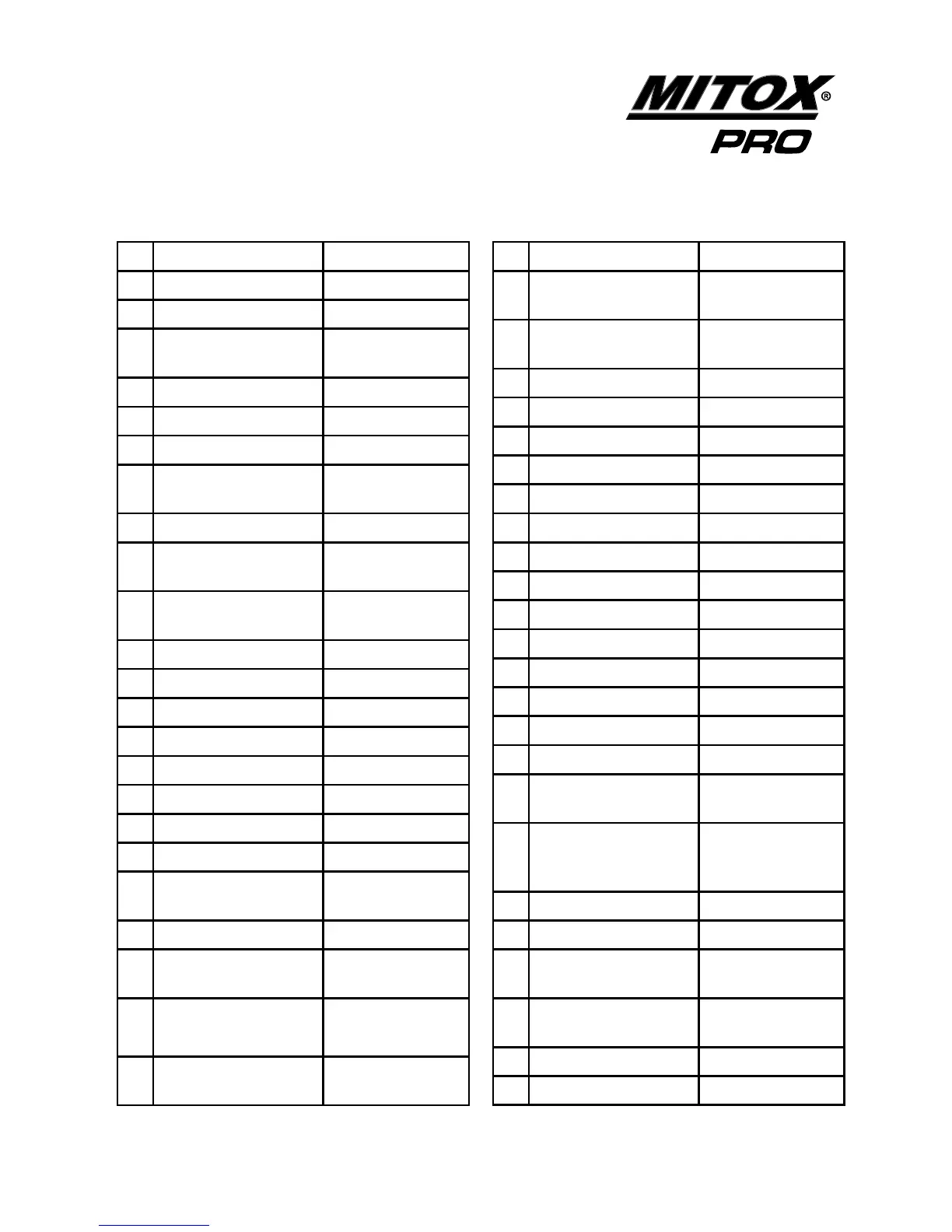 ID PART NUMBER DESCRIPTION