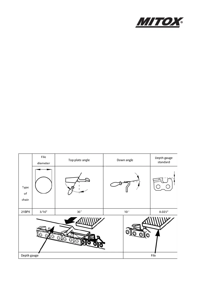 • Sharpen chain with a 3/16 (4.8mm) file and holder (Oregon part number 18228) / Sharpening