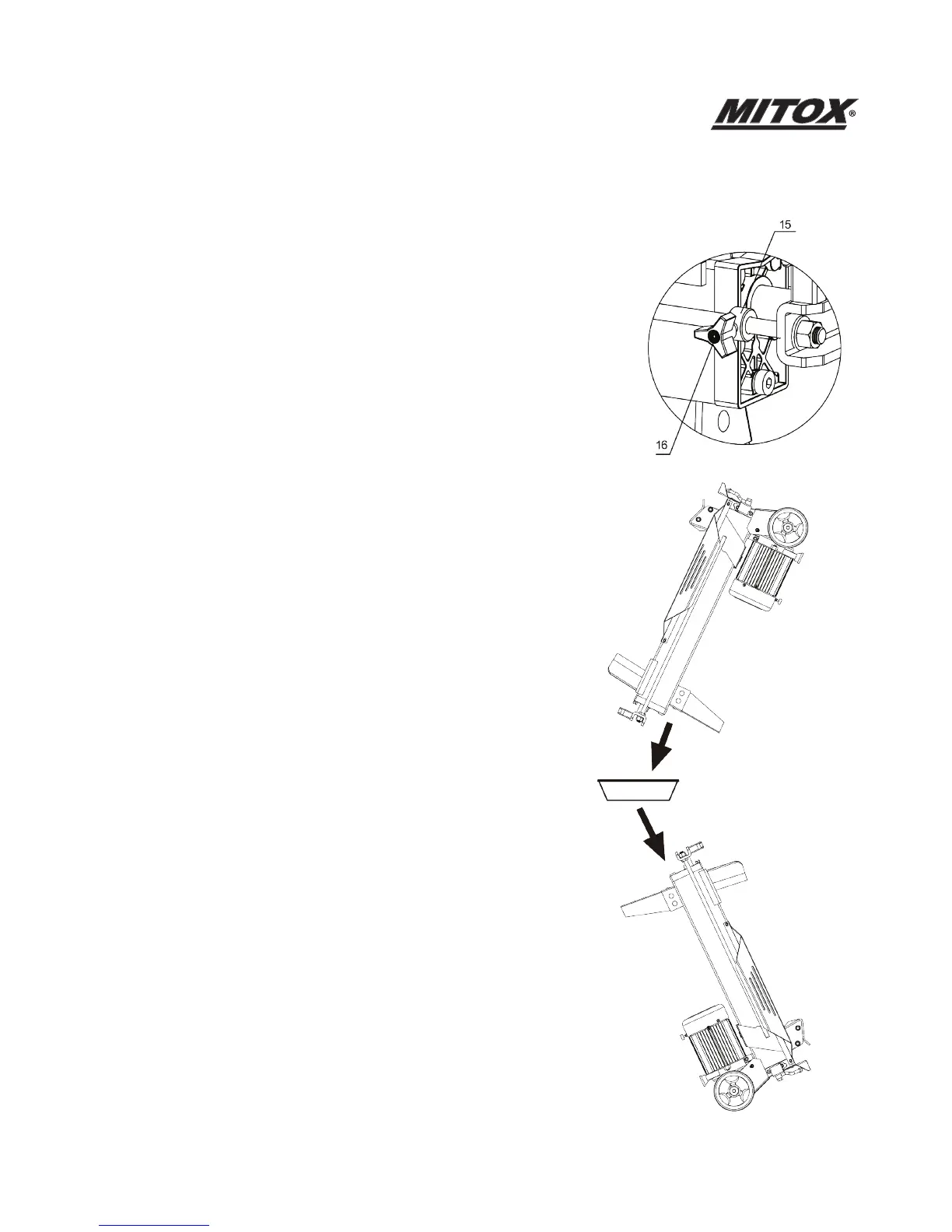 • Turn the log splitter on the Support Leg side using a 4 litre capacity container