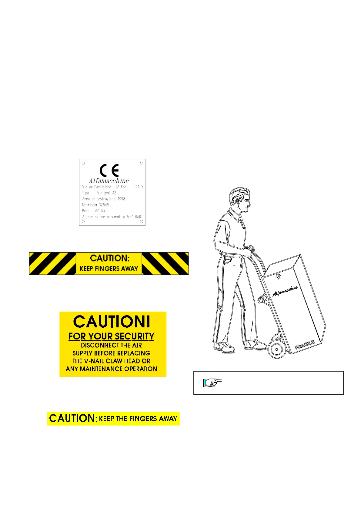 • Risk of finger crushing in the working areas of vertical