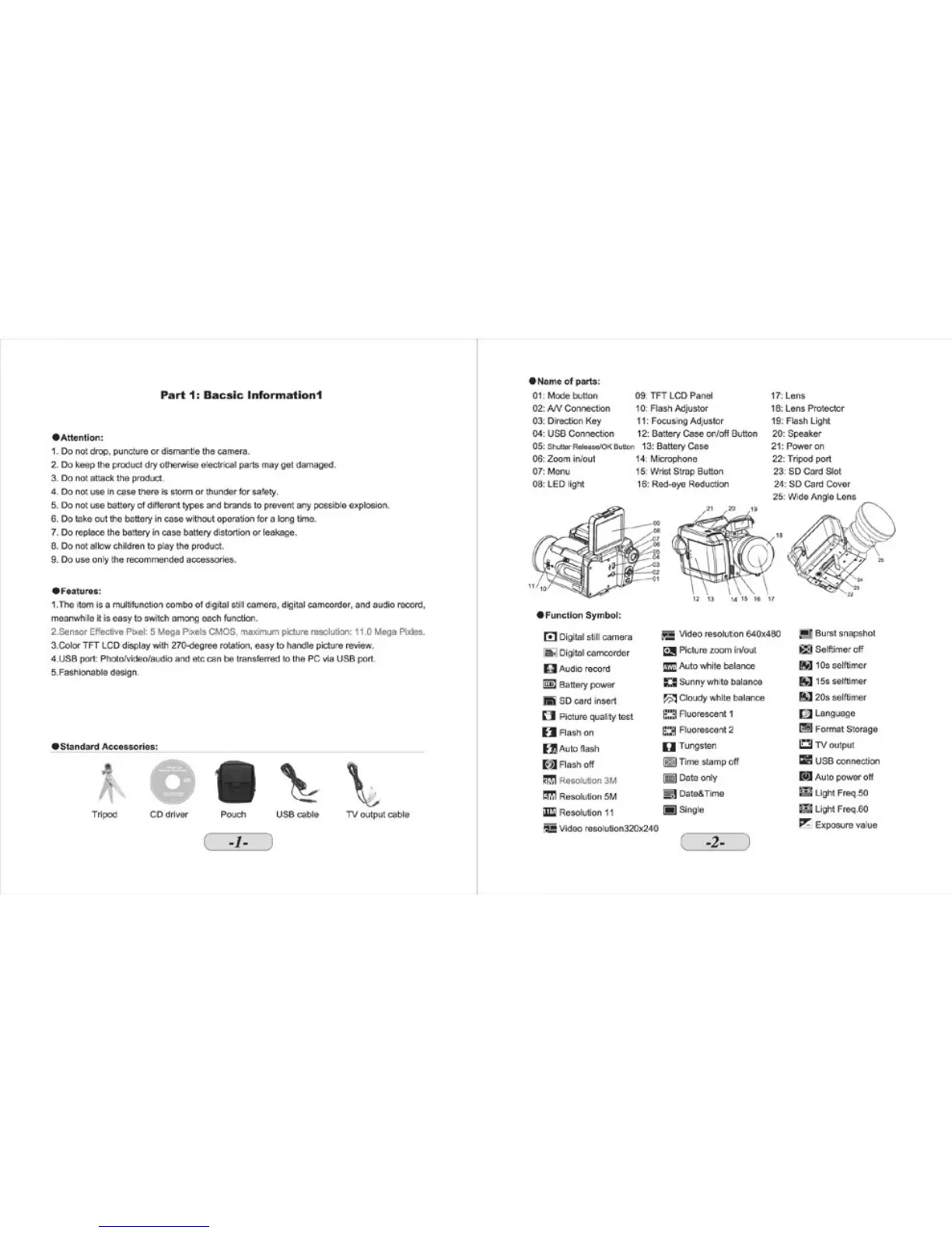 Mitsuba DSC - Basic Information; Features; Standard Accessories; Name of Parts