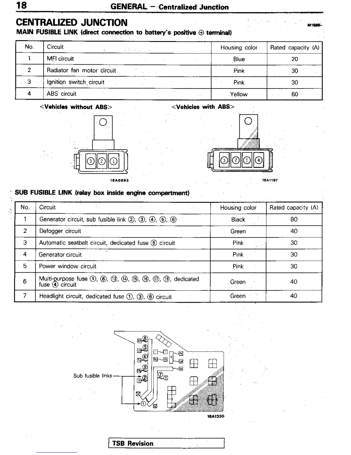 Mitsubishi Electric 1992 Eclipse - Centralized Junction; Main Fusible Link; Sub Fusible Link
