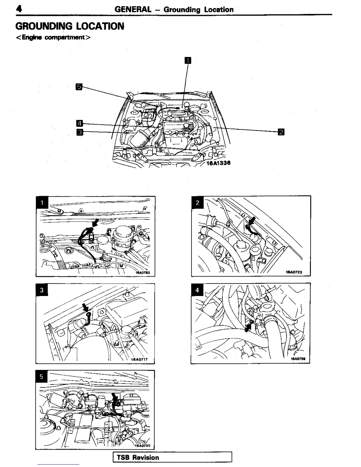 Mitsubishi Electric 1992 Eclipse - Grounding Location; Engine Compartment Grounding Points; Front Interior Grounding Points; Rear Interior and Luggage Compartment Grounding Points