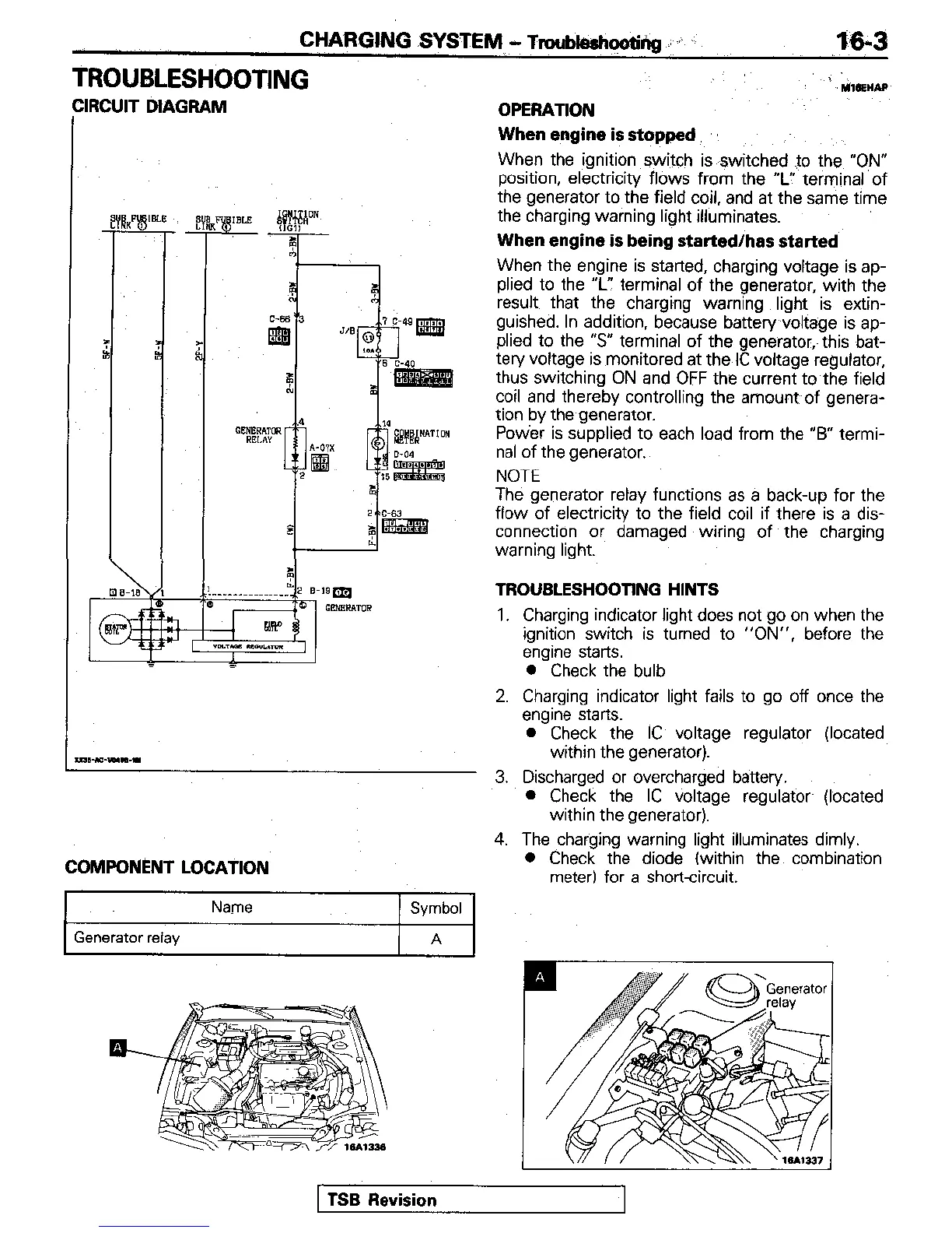 Mitsubishi Electric 1994 Eclipse - Charging System; Troubleshooting; Circuit Diagram; Operation