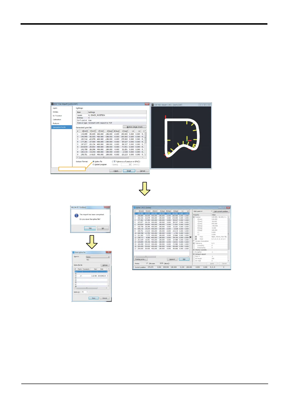 button, point sequence data generated to the spline file is output. By clicking [Yes] at the import com-