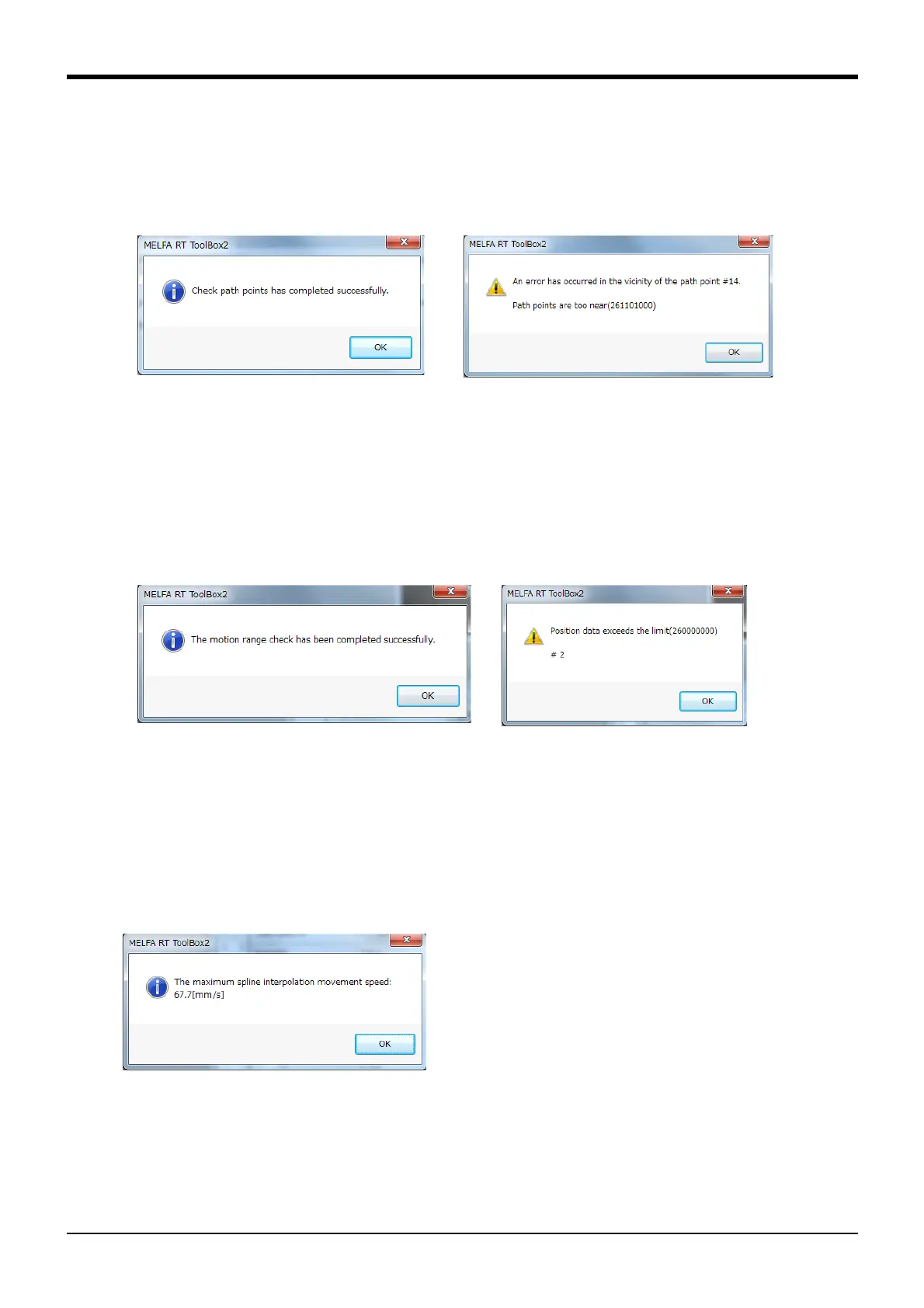 then clicking the [Check] button, a check of each path point is performed. A completion dialog box appears if