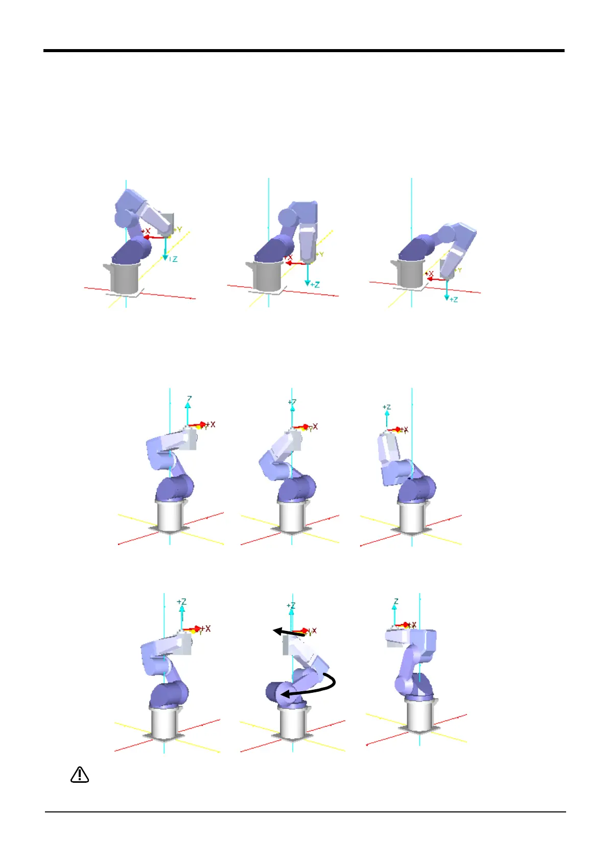 •Positions D -> E -> F: The robot's motion path passes through a singular point