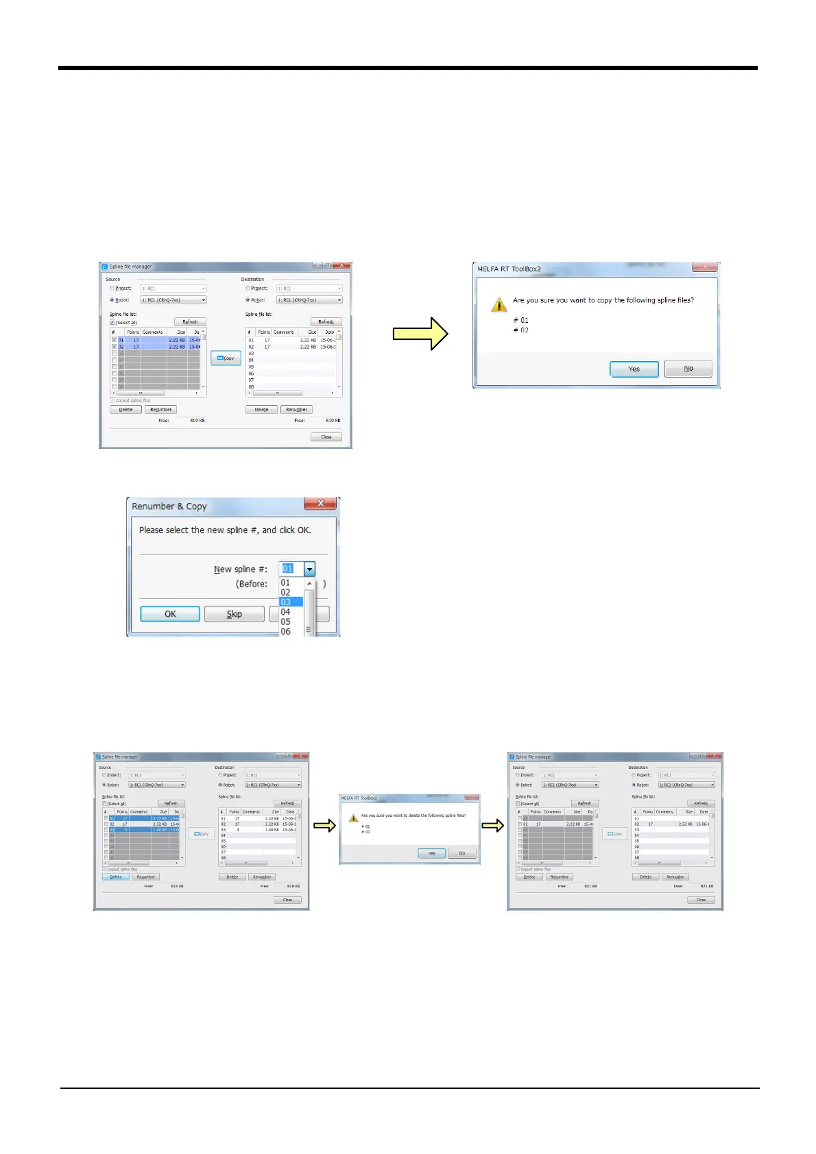 selected spline file is copied to the destination. If a spline file with the same number exists in the destination,