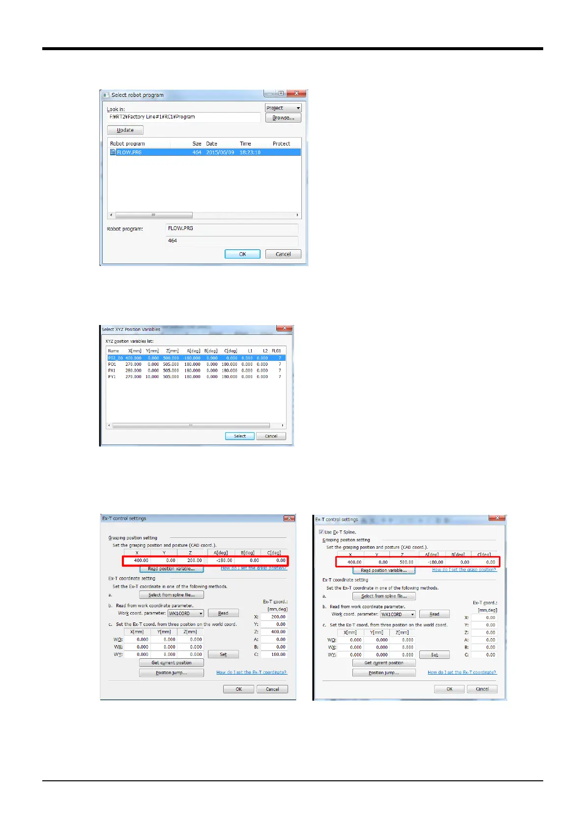 By selecting the program and clicking the [OK] button, the Select XYZ Position Variables screen appears.