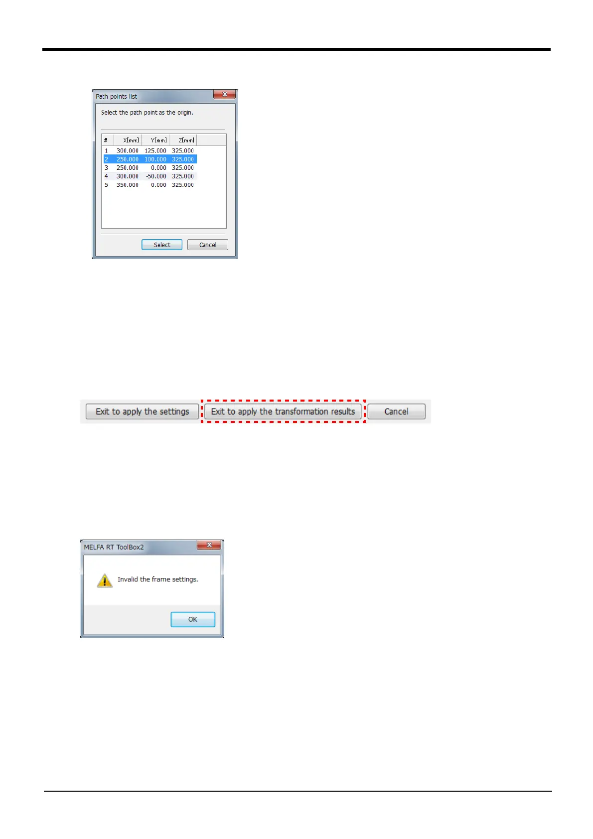 "Invalid the frame settings." will appear, and the frame transformation cannot be executed.