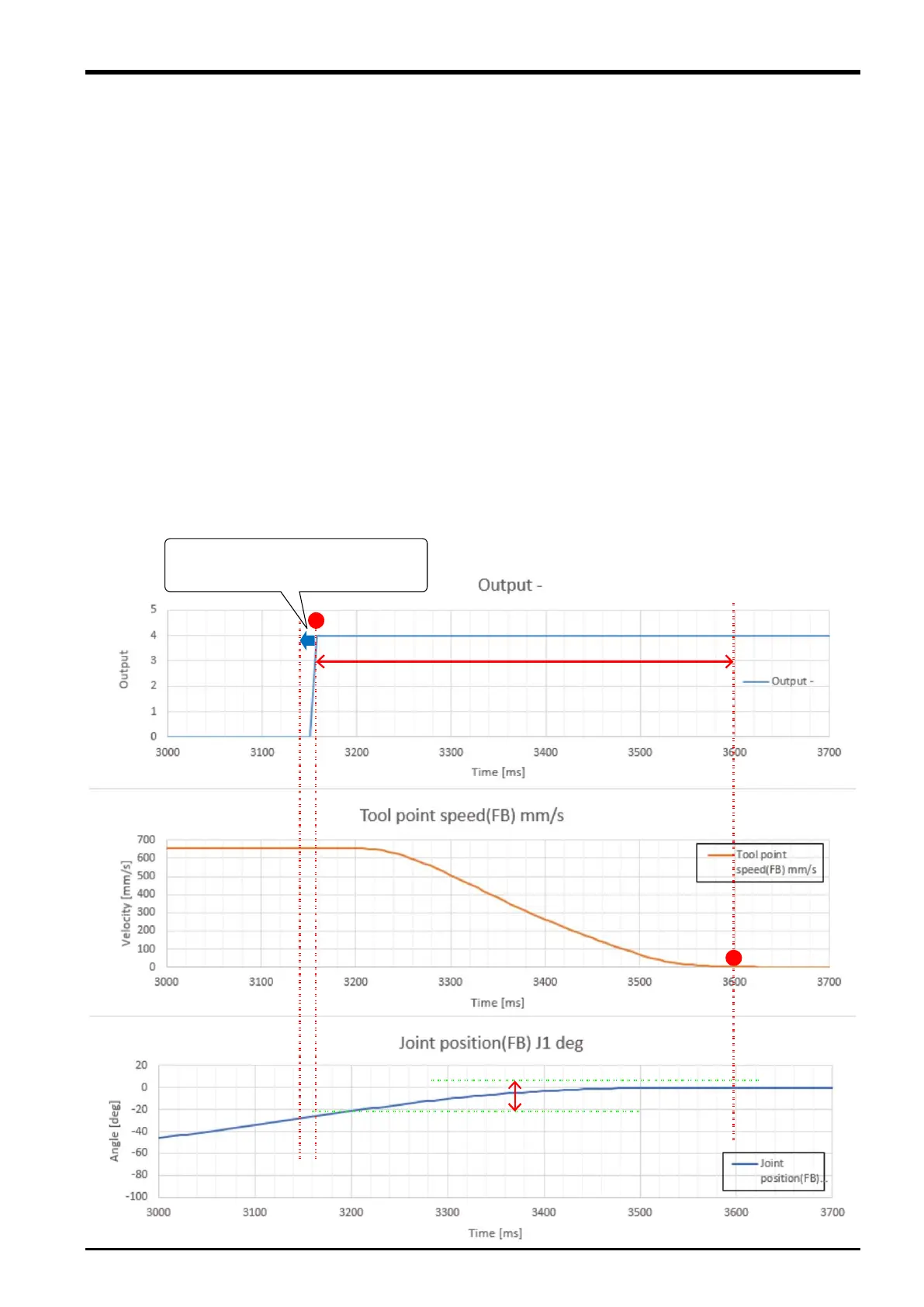 the graphs on the following page which show an example of the stopping distance of the J1 axis. If