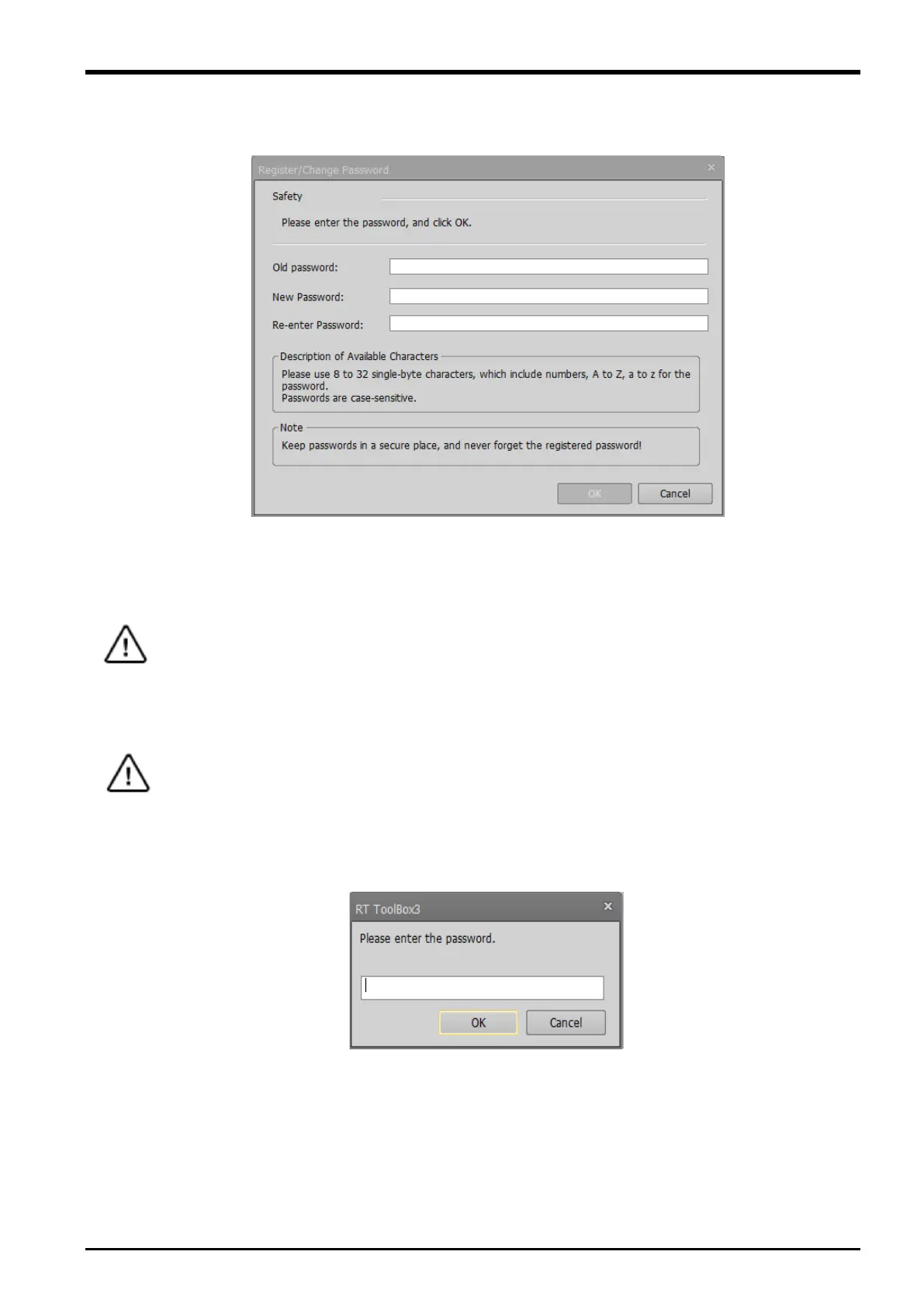 When a parameter for the safety monitoring function is written, the password entry screen appears.