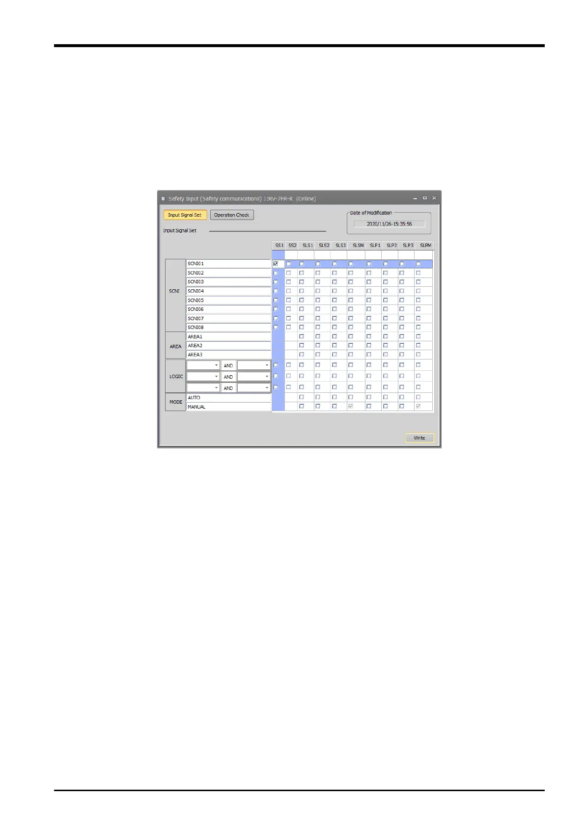Example 1: To assign safety input SCNI01 to SS1, check the intersection of SCNI01 and SS1 as shown in Fig.