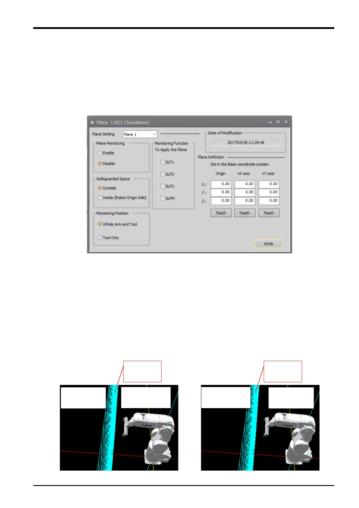 is placed. To set the safeguarded space on the opposite side of the origin of the robot, select Outside.