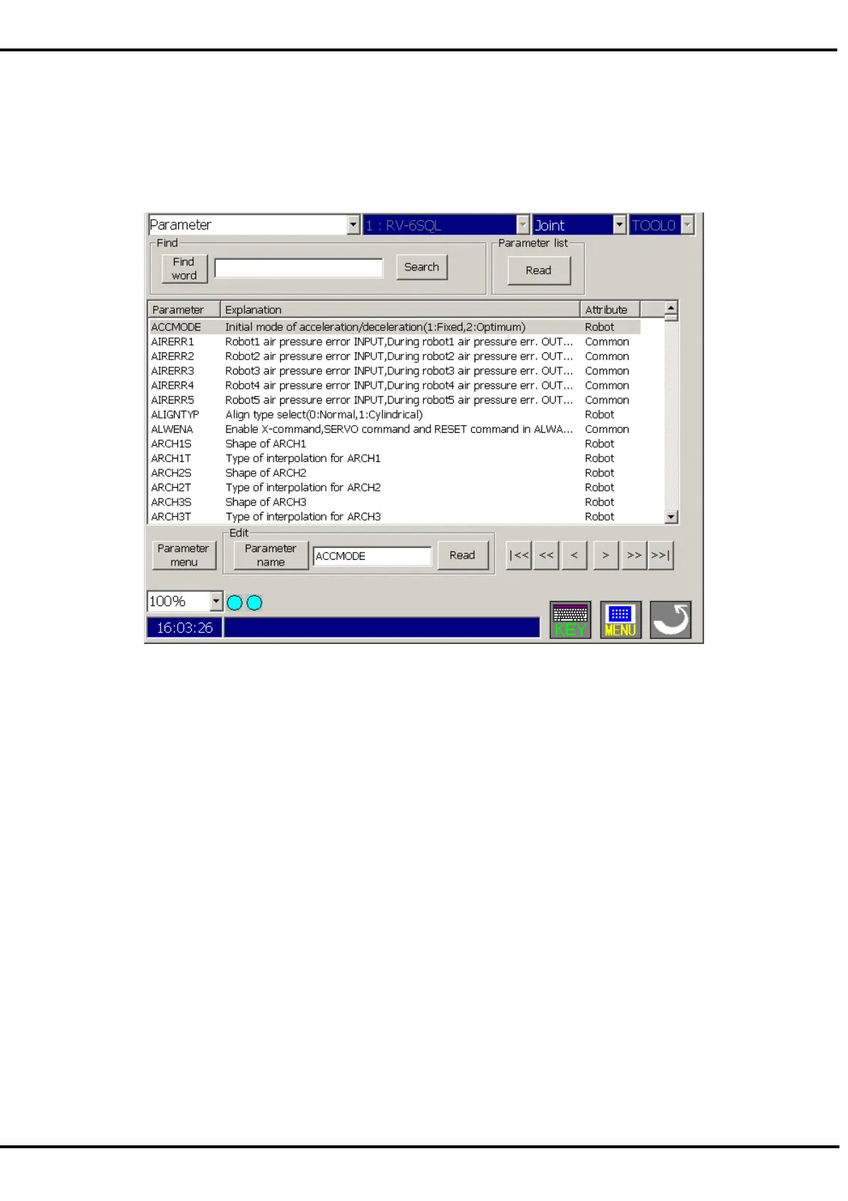 The parameter editor can be used to reference and rewrite the parameter information set in the robot controller.