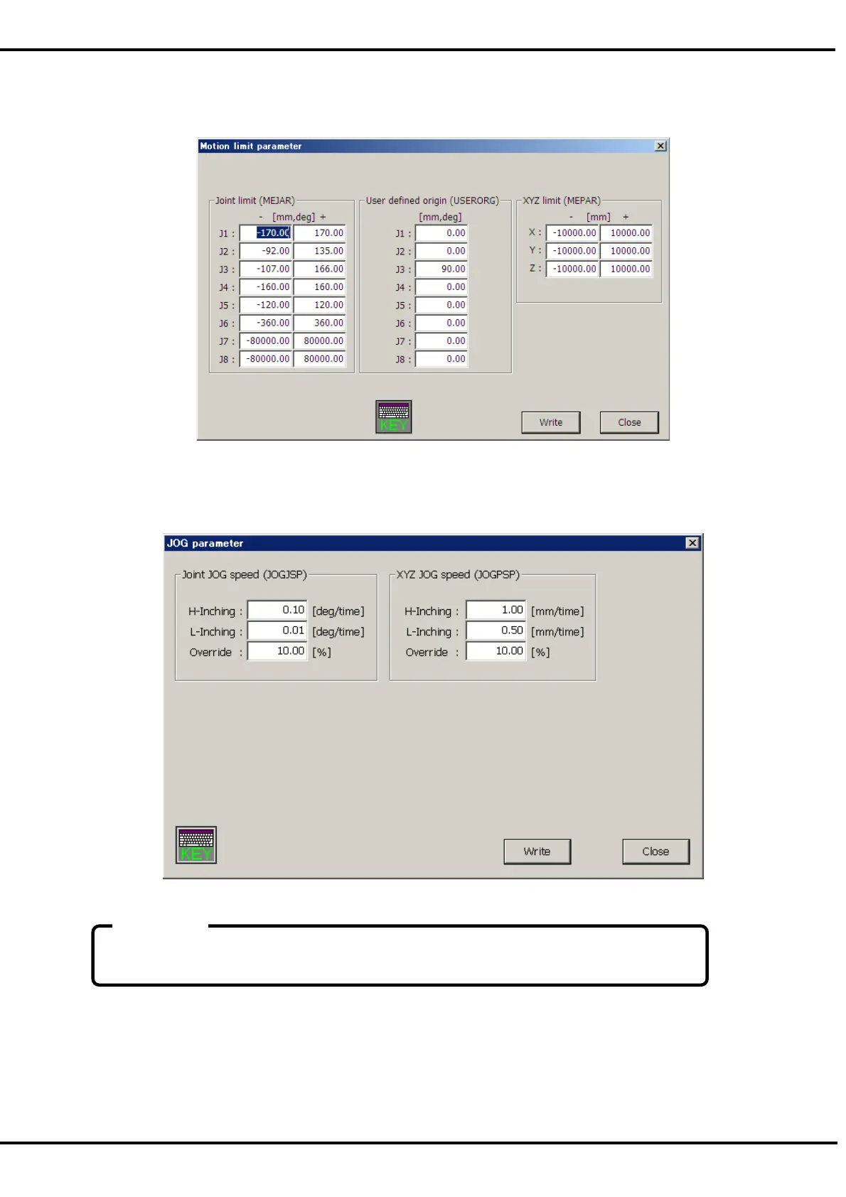 Mitsubishi Electric CR800 Series - Motion Limit Settings; JOG Speed Settings