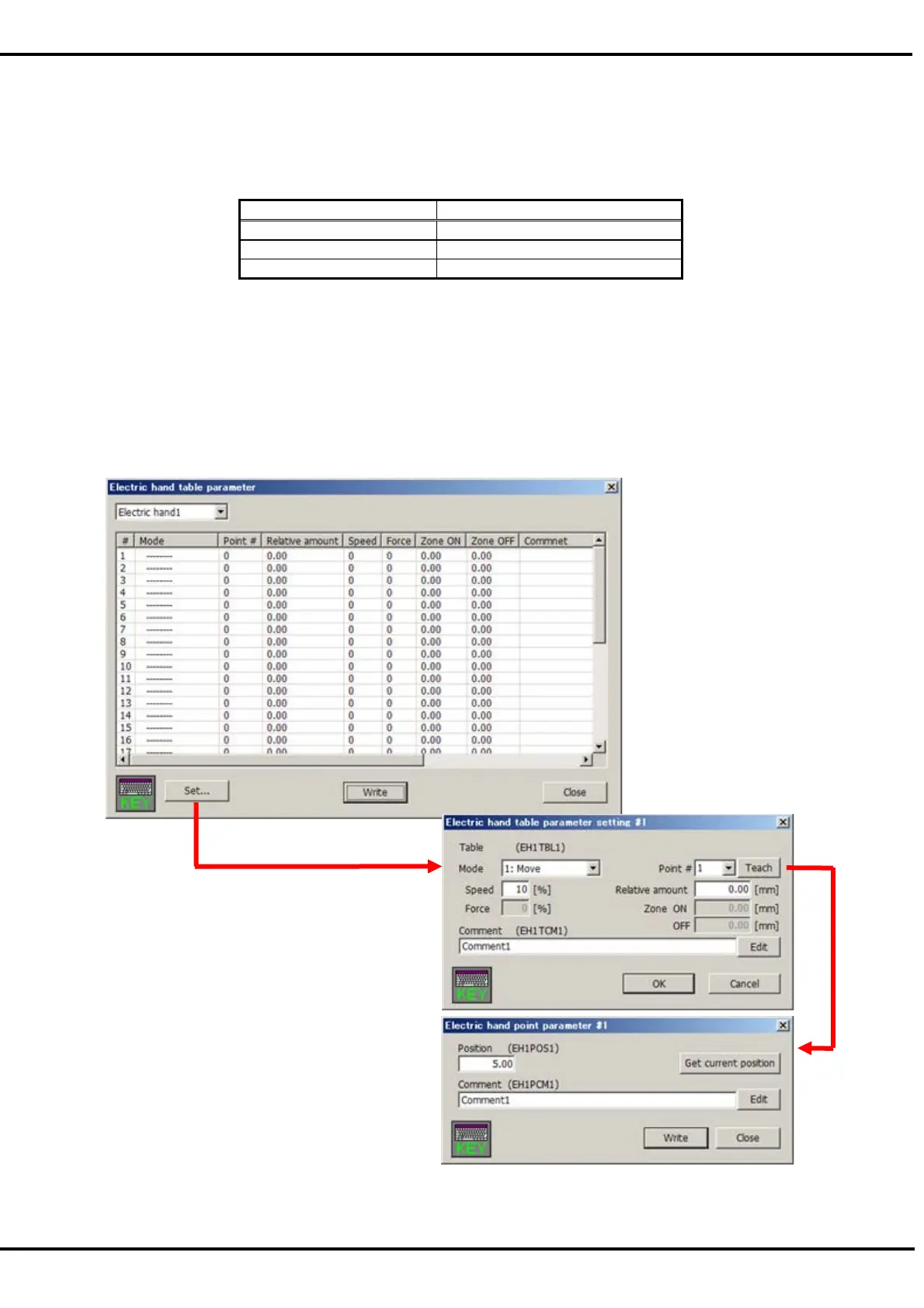 When the [Teach] button on the “Electric hand table setting” screen is tapped, the target “Electric hand teach”