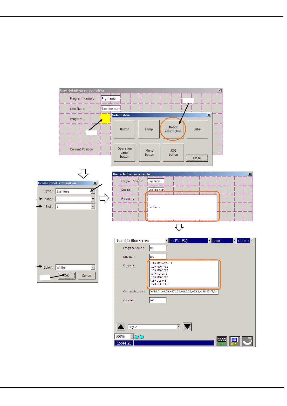 (3) Select "Exe line" (<c>) as the type on “Create robot information” window.