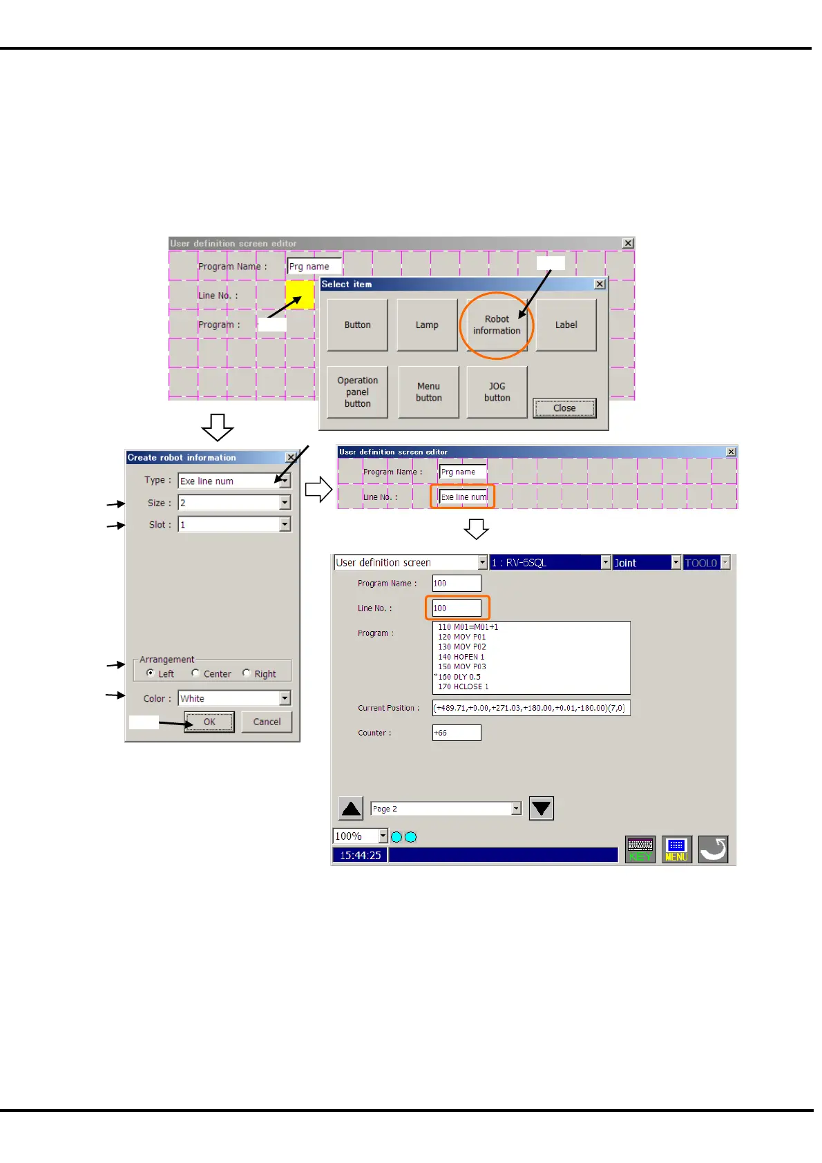 (3) Select "Exe line num" (<c>) as the type on “Create robot information” window.