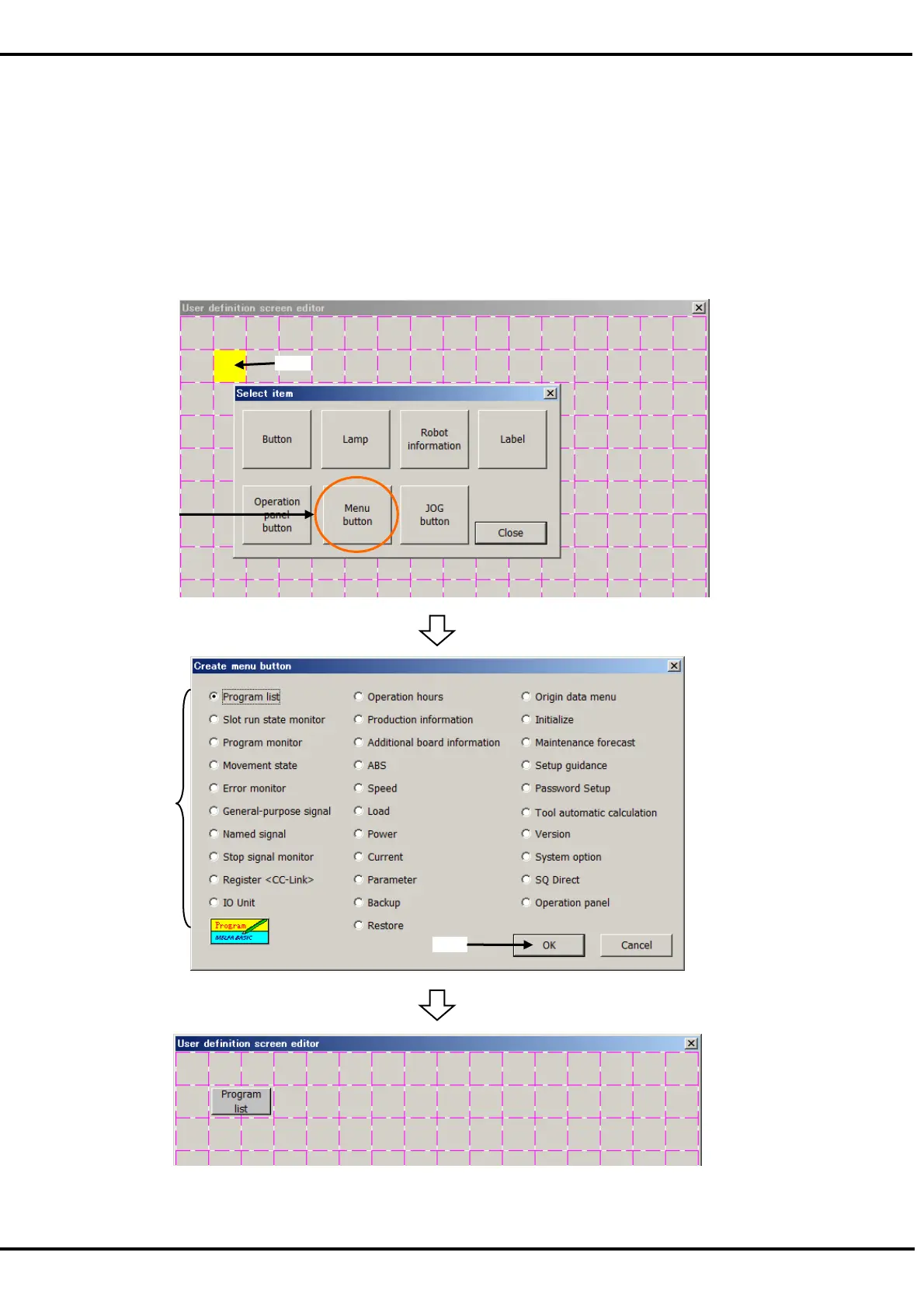 3) On the [Create menu button] screen, select the menu button <c> to be arranged.
