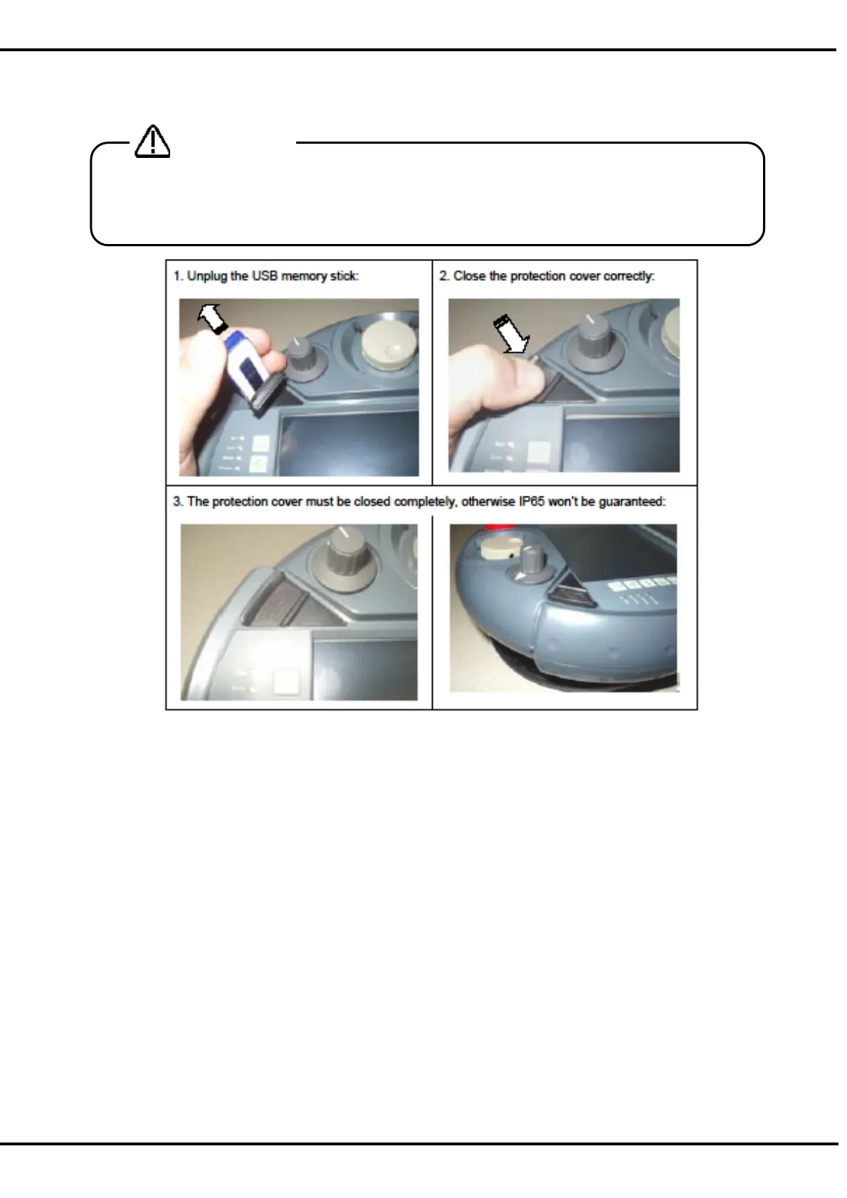 Please shut the cover surely after unplugging the USB memory stick. Otherwise the foreign body