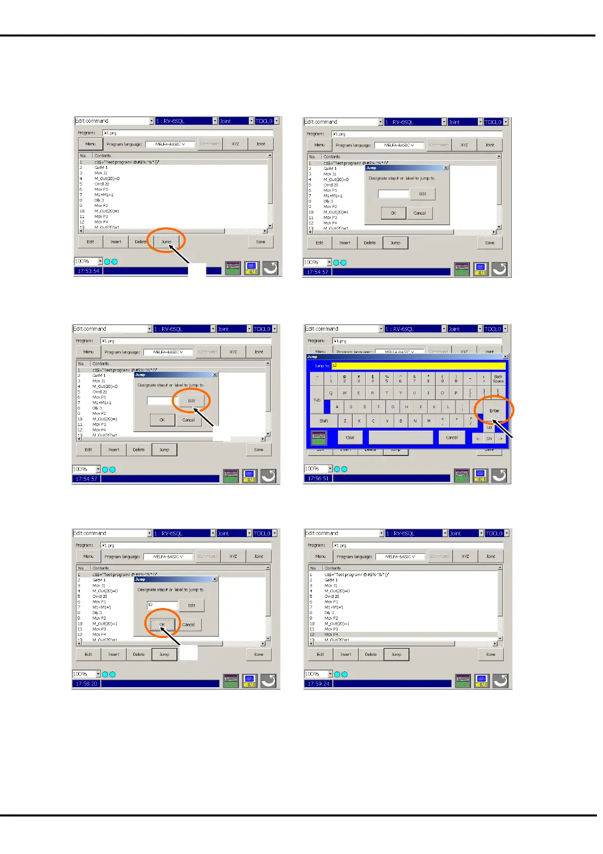 The program jumps to the designated label or line number. To carry out jumping, tap the [Jump] button.