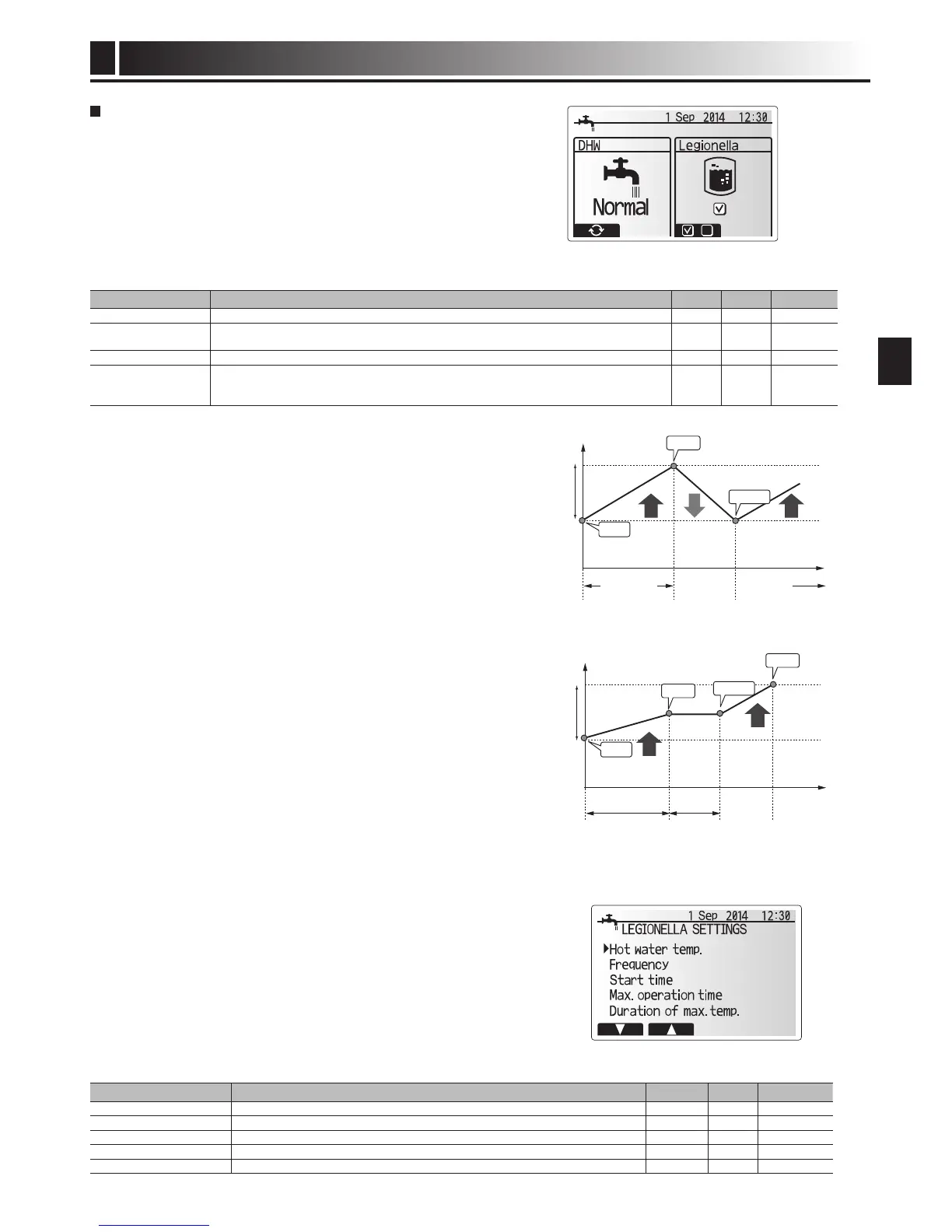 2. To edit the legionella function, press down the MENU button for 3 secs and