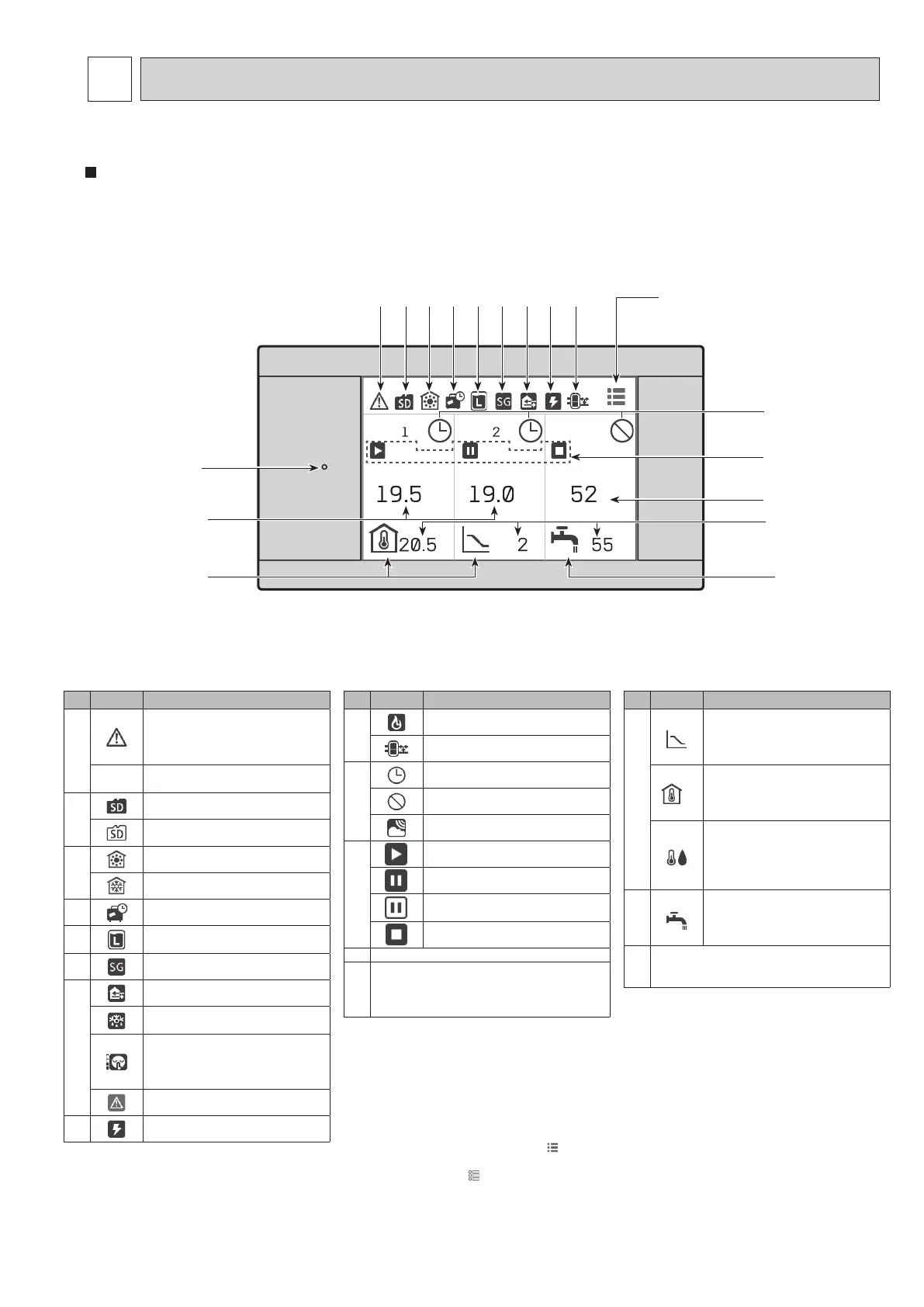 The base screen does not display the operation icons and the target temperature values.