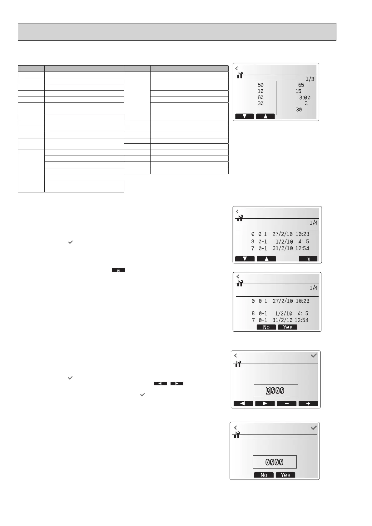 1. From Error history screen, touch rubbish icon