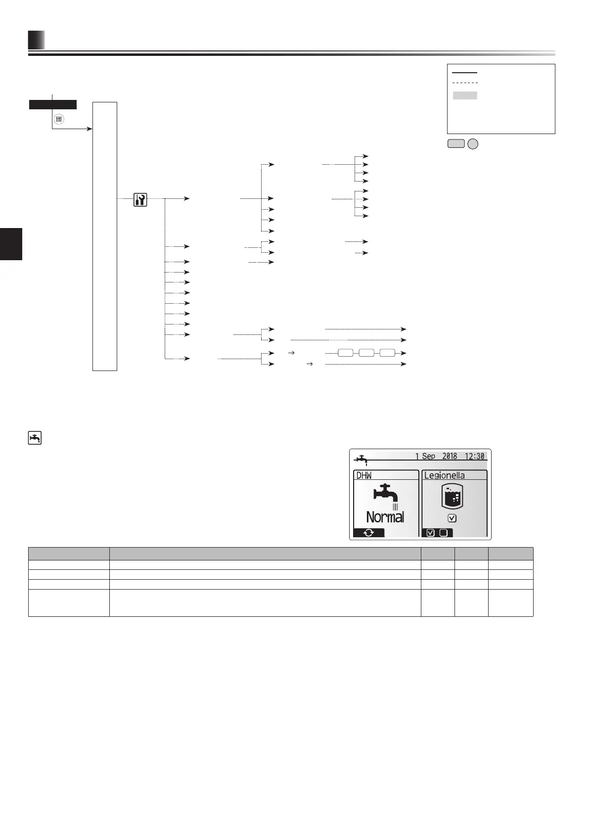The domestic hot water and legionella prevention menus control the operation of DHW