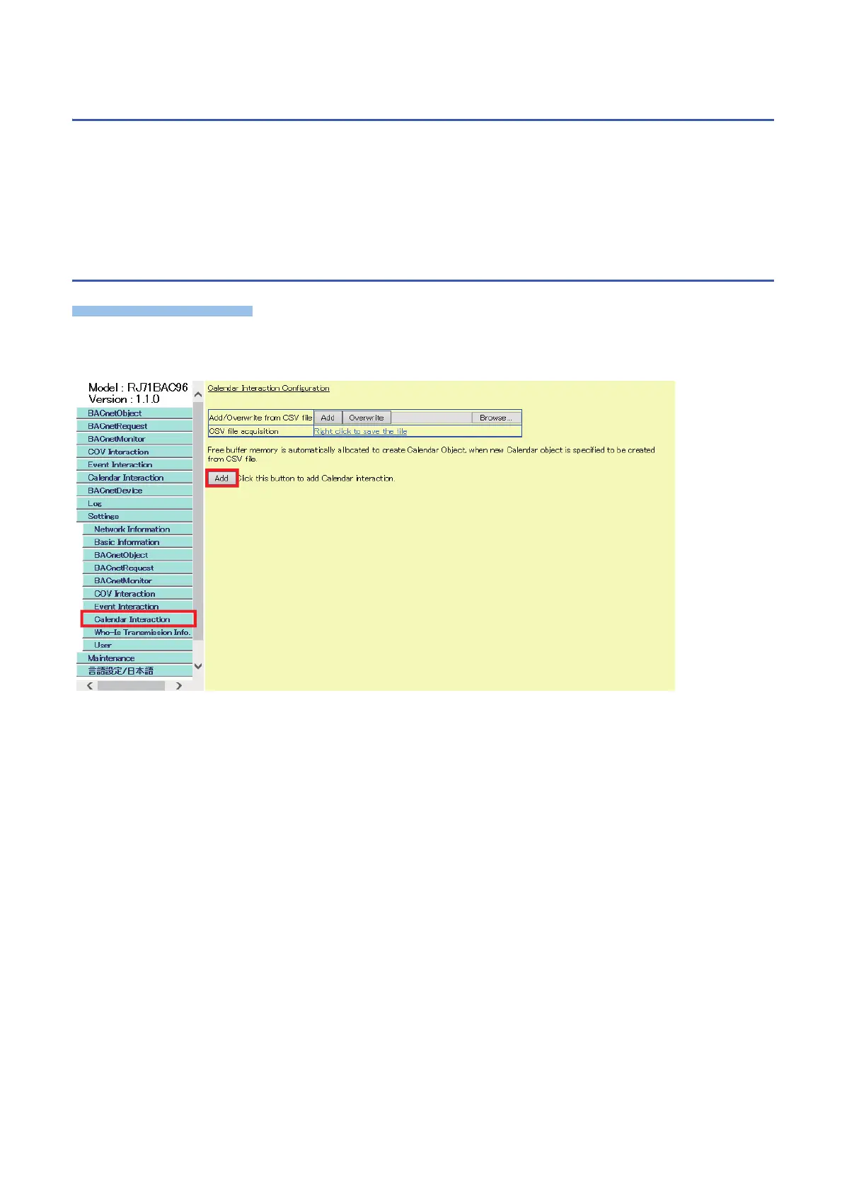2. Select [Settings] [Calendar Interaction], and click the [Add] button on the "Calendar Interaction" screen.