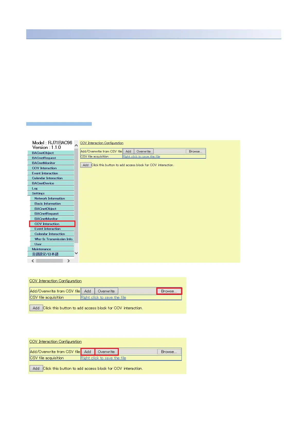 For the assignment method of a data block (access block for COV interaction) with a web browser, refer to the operating