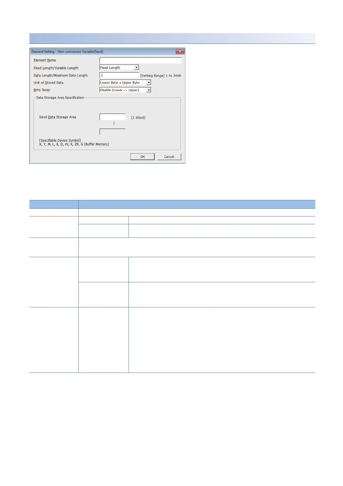 Lower Bytes Only When sending: Each lower byte data in the data storage area is sent. The Ethernet-equipped module