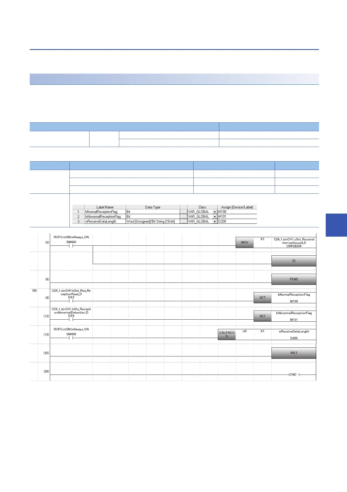 This section shows programming examples for data reception with an interrupt program in data communications using the
