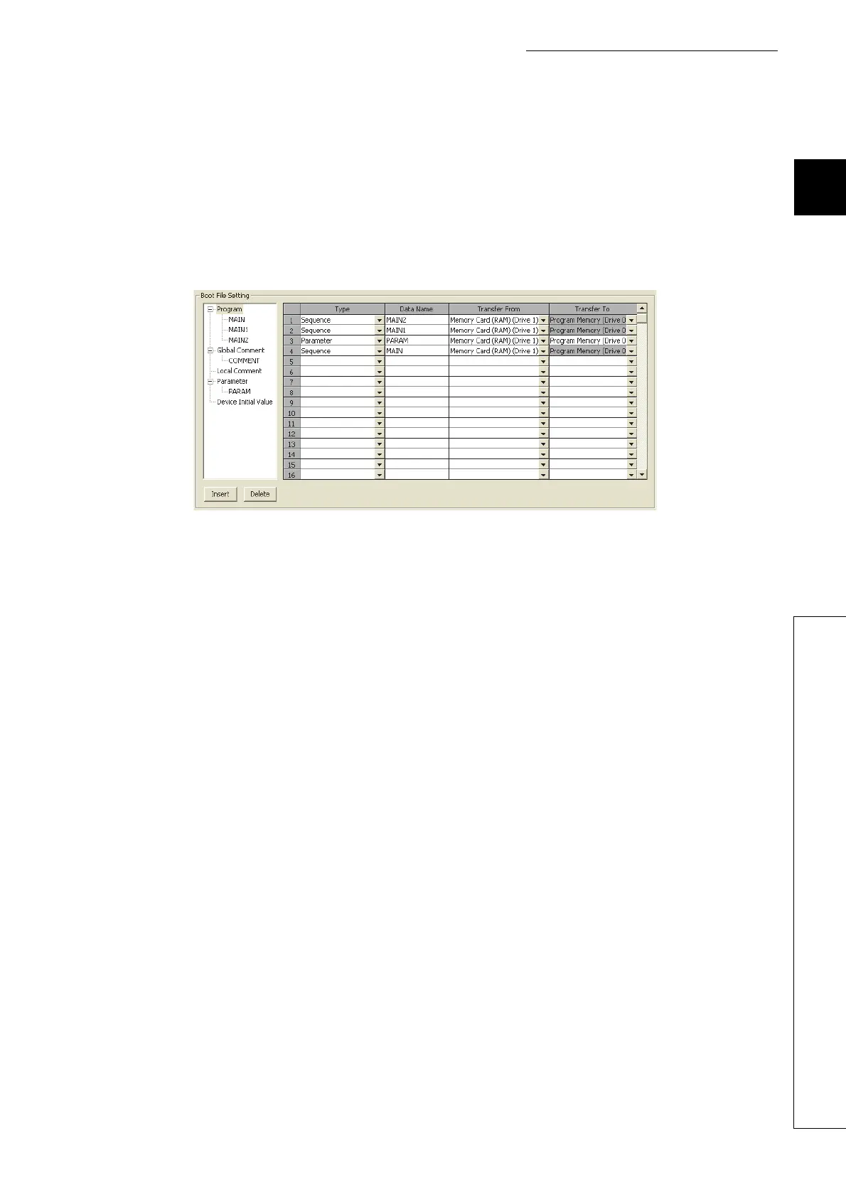 Set the names of files to be booted to the program memory in the Boot File tab of the PLC parameter