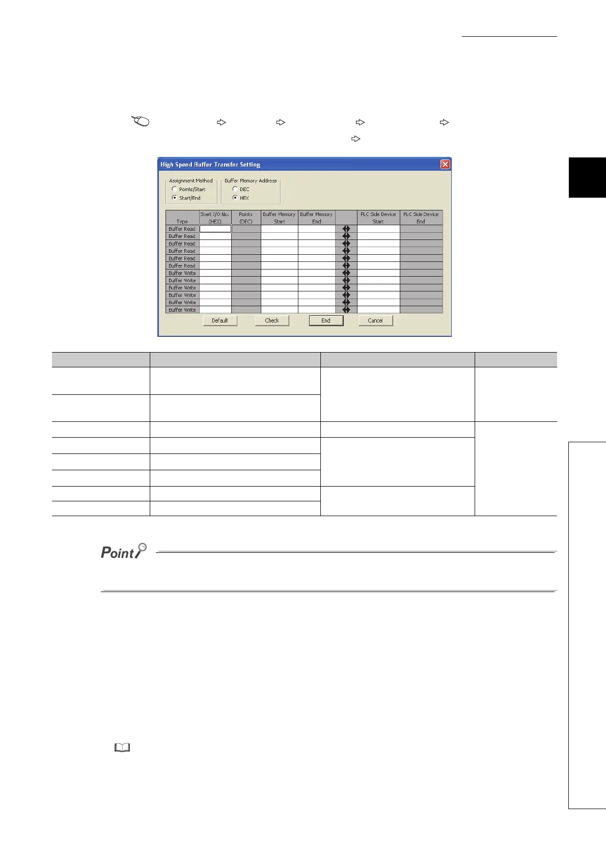 Open the High Speed Buffer Transfer Setting window and set the transfer ranges.